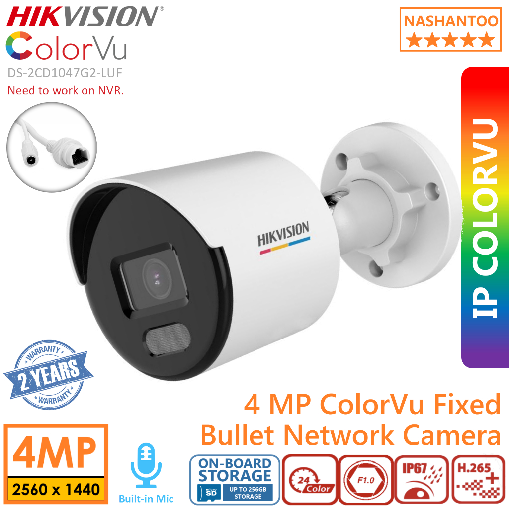 HIKVISION DS-2CD1047G2-LUF 4MP Outdoor ColorVu Lite Audio PoE Fixed Bullet IP Network CCTV Camera