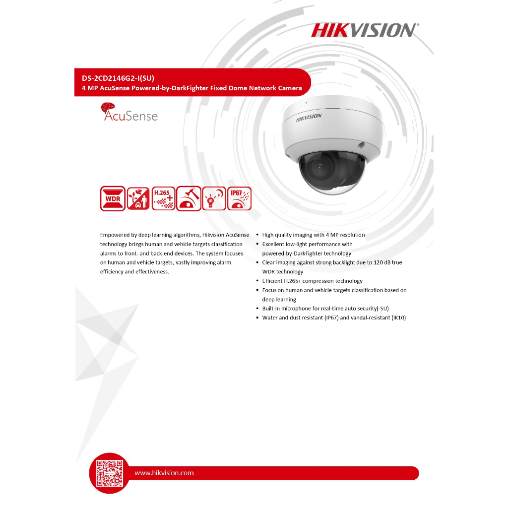 Hikvision DS-2CD2146G2-I 4MP Outdoor AcuSense H.265+ Fixed Dome IR IP Network Camera