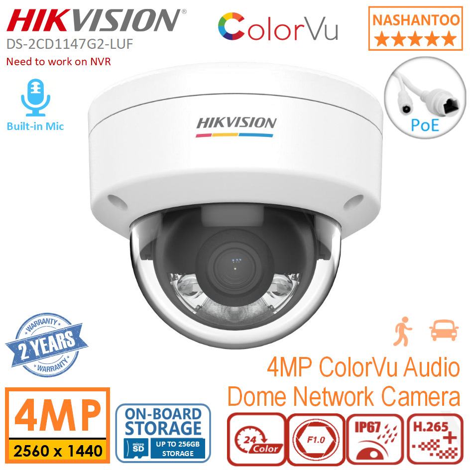 Hikvision 4MP Colorvu PoE Audio Dome IP Network Camera H.265+ Built-in Mic DS-2CD1147G2-LUF