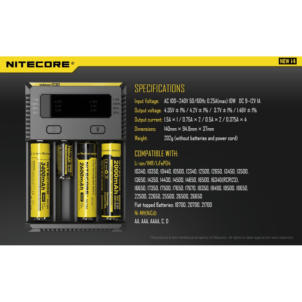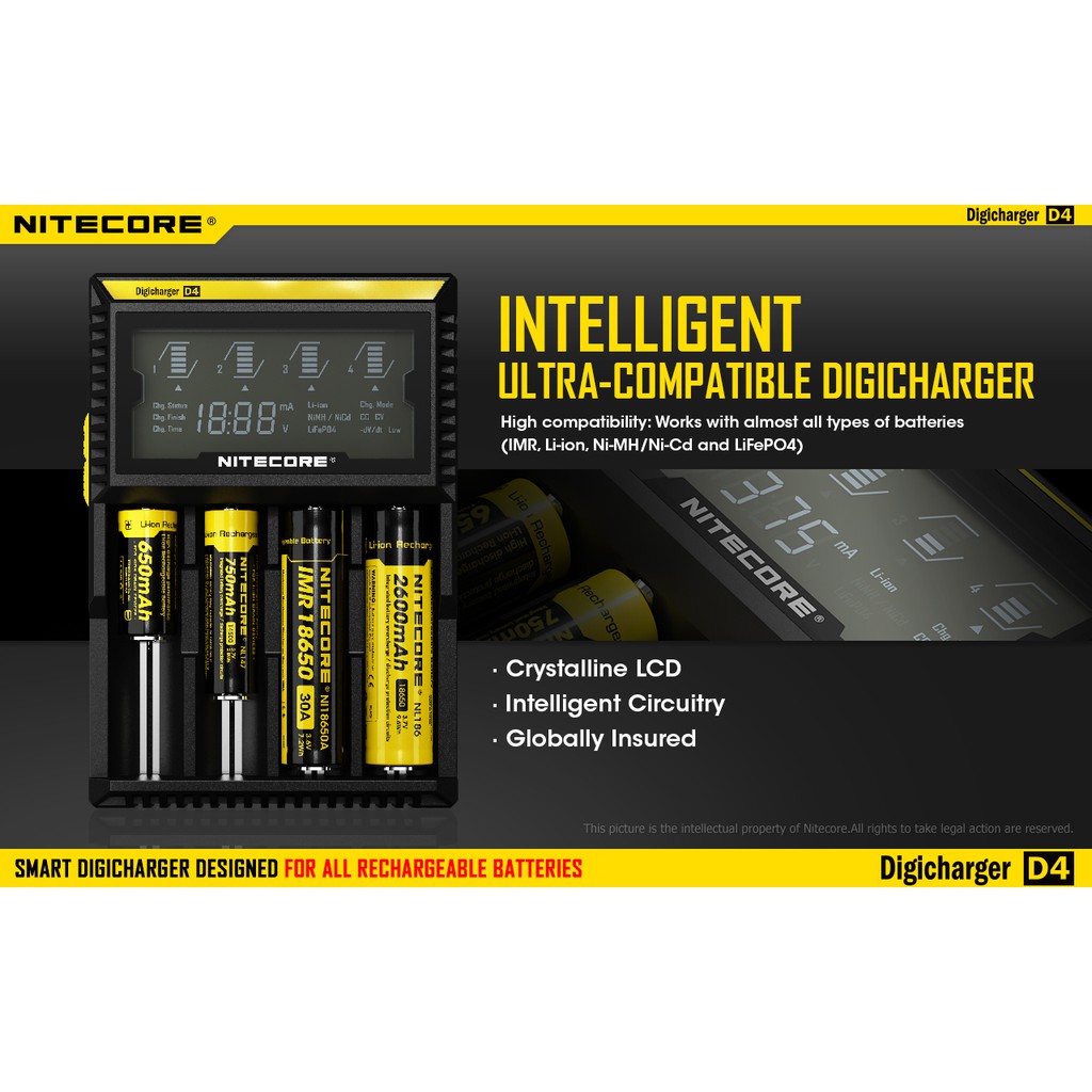 Nitecore D4 D2 New I4 CI2 Digicharger LCD Intelligent li-ion 18650 14500 16340 26650 Battery Charger