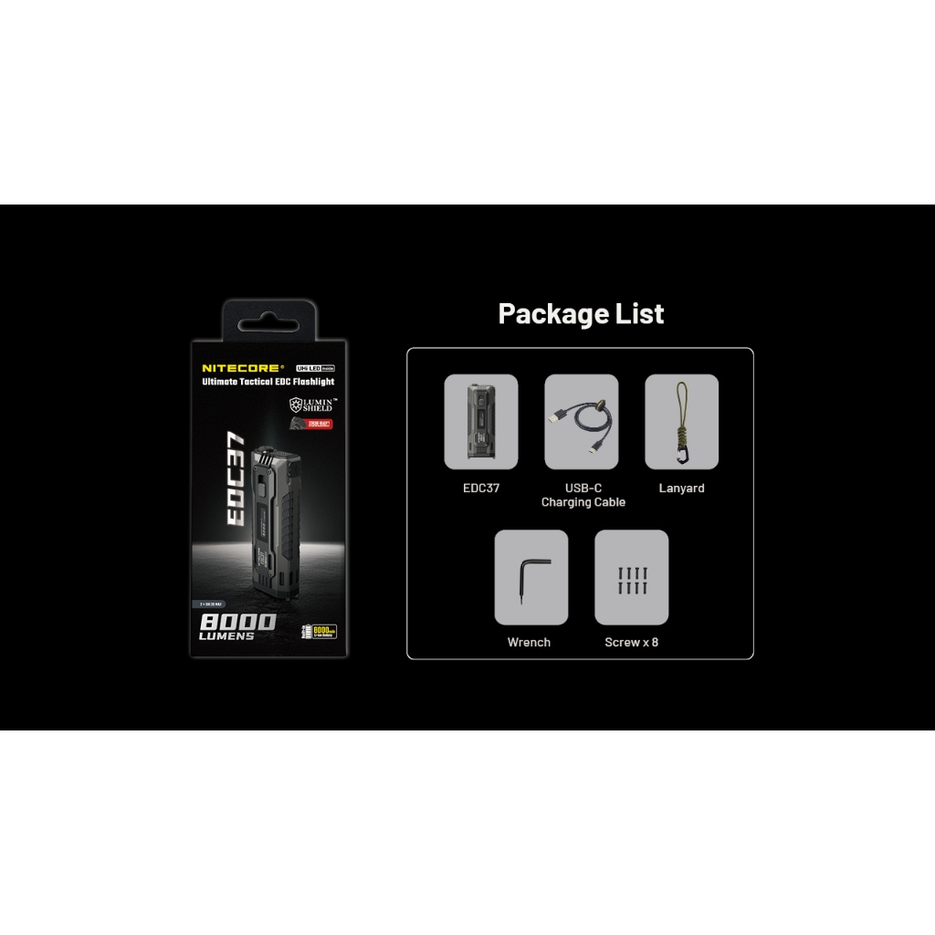 NITECORE EDC37 8000 lumens supports USB-C direct charging EDC flashlight