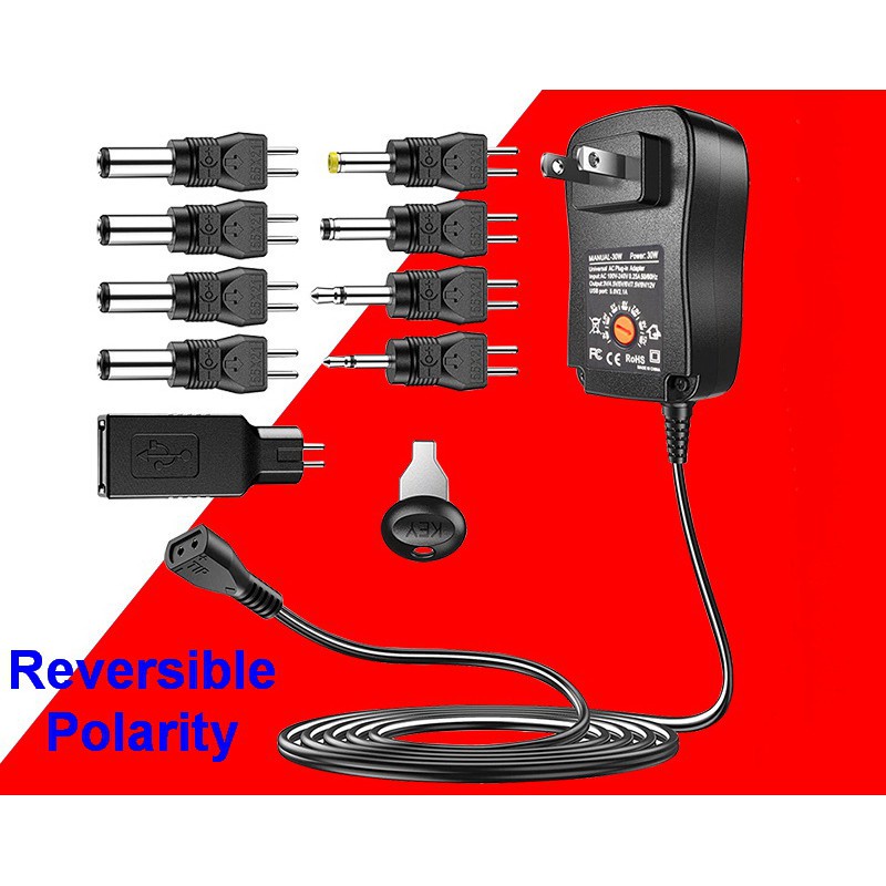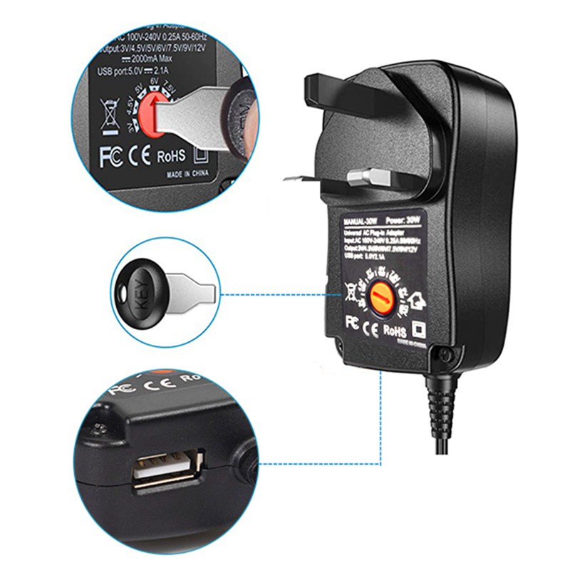 30W 3V To 12V 2A/2.5A 2500mA AC/DC Adapter US/EU/UK Adjustable Power Adapters USB Universal Charger Power Supply Reversible Polarity
