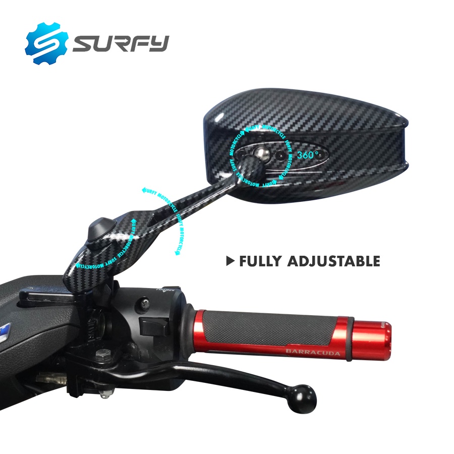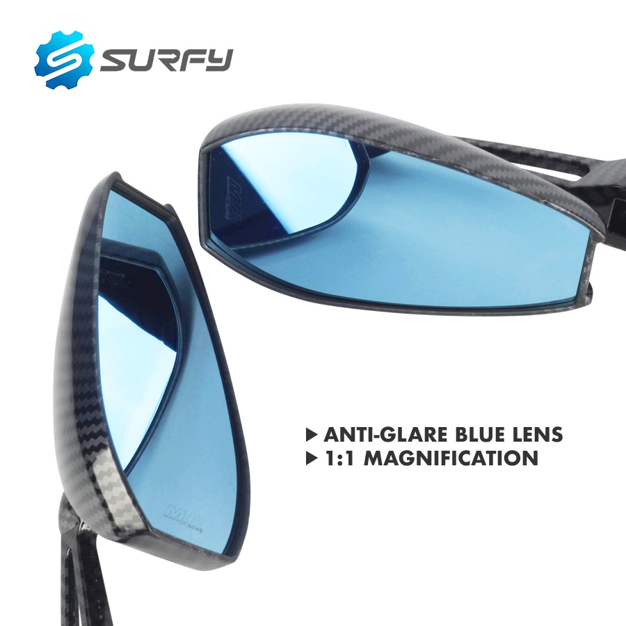 Street King Side Mirror v1 Carbon Fiber Design Blue Lens CNC Alloy Surfy Motorcycle
