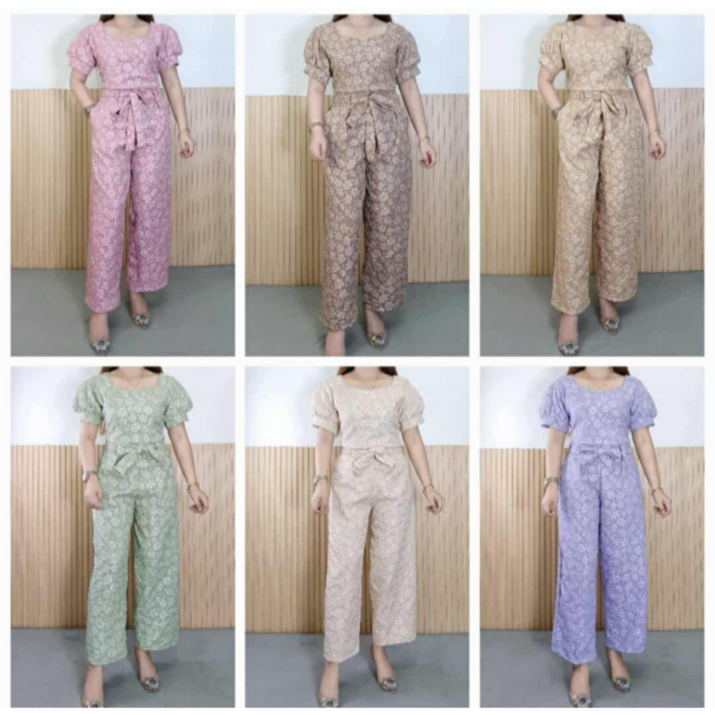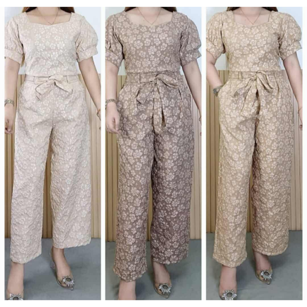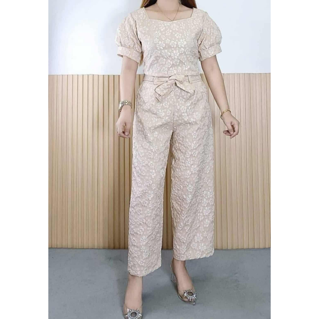 Q Modern Filipianiana School Office Casual Wear Terno Set Puff Sleeves Sqaure NeckTop and Pants wit
