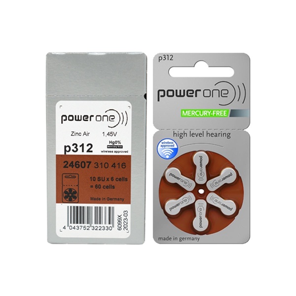 Power One 312 Zinc Air Hearing Aid Battery (1 Pack) 1.45V A312 PR41 ZA312 P312 6pcs