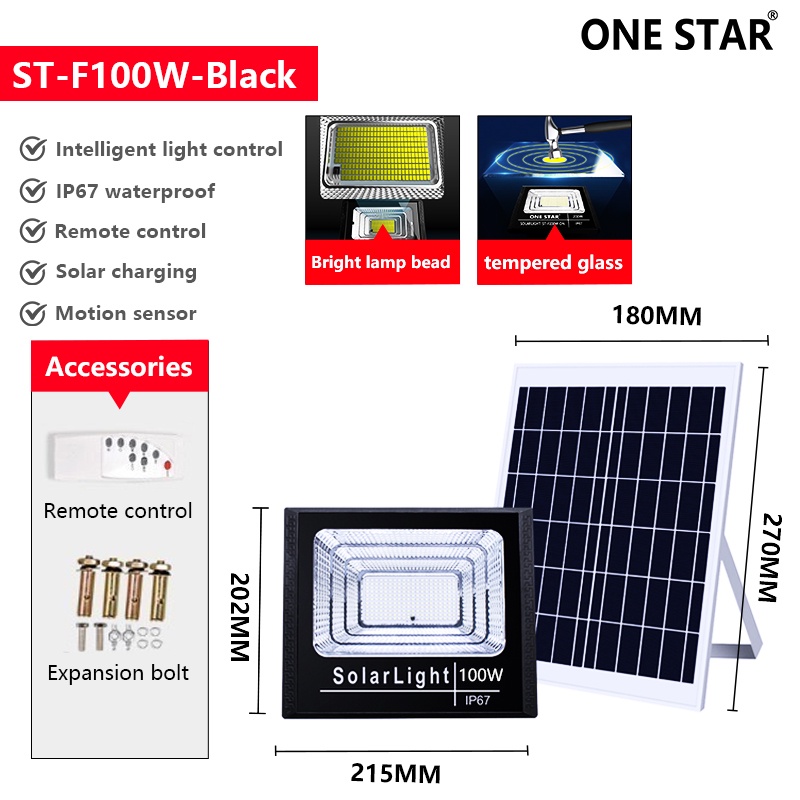 NSS Solar Lights LED Flood Light 60W - 100W Waterproof Outdoor Solar Panel and Remote