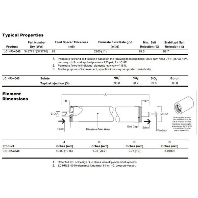 Filmtec Reverse Osmosis Membrane LCLE-4040/BW30(Made in America)