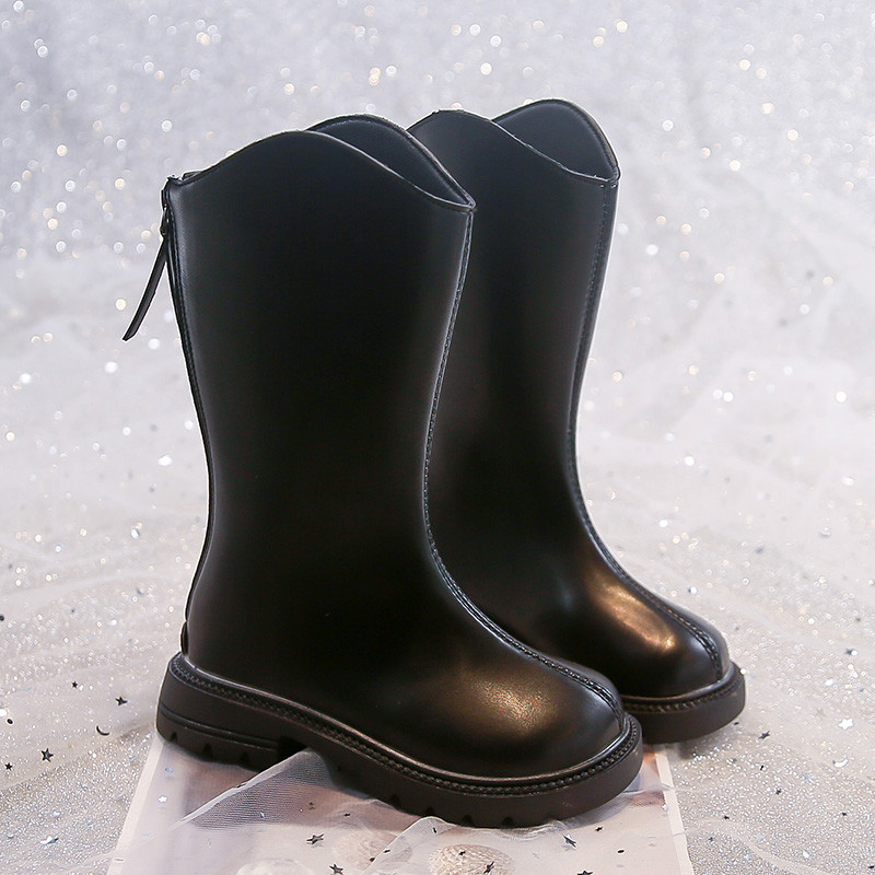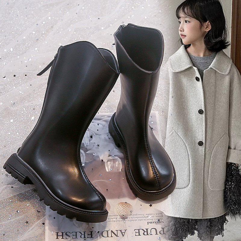 Autumn Winter Girls High-top Leather Long Boots Fashion Zipper Soft Sole Anti-slippery Kids Shoes 3-16 Years Old
