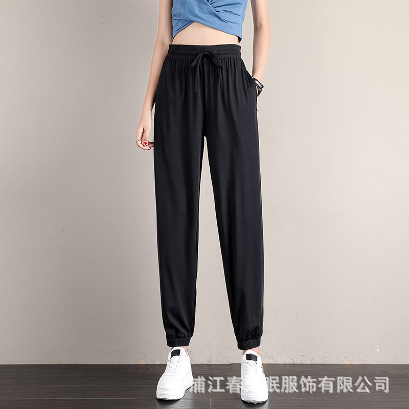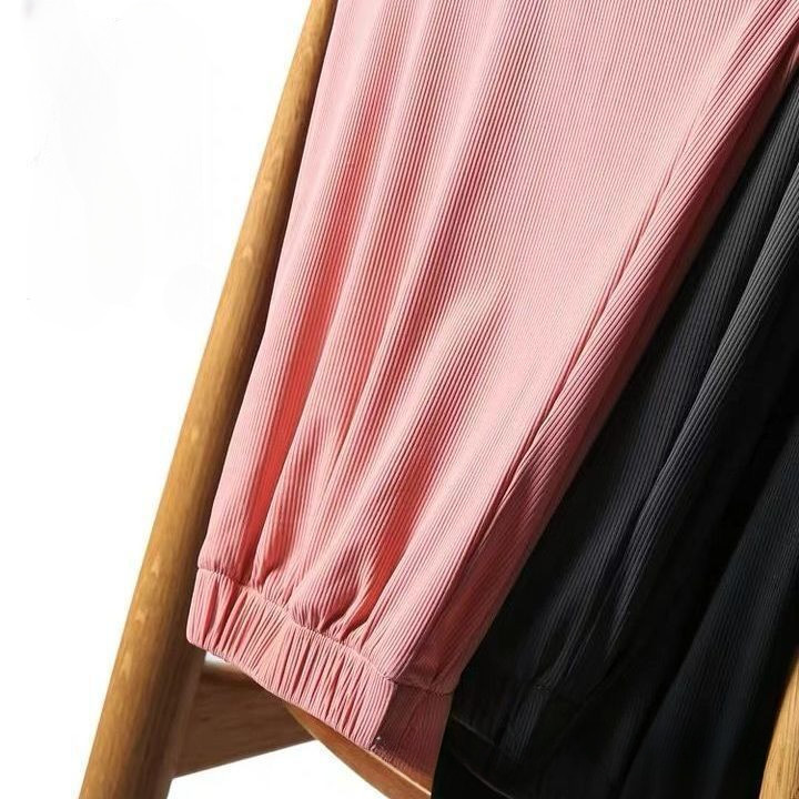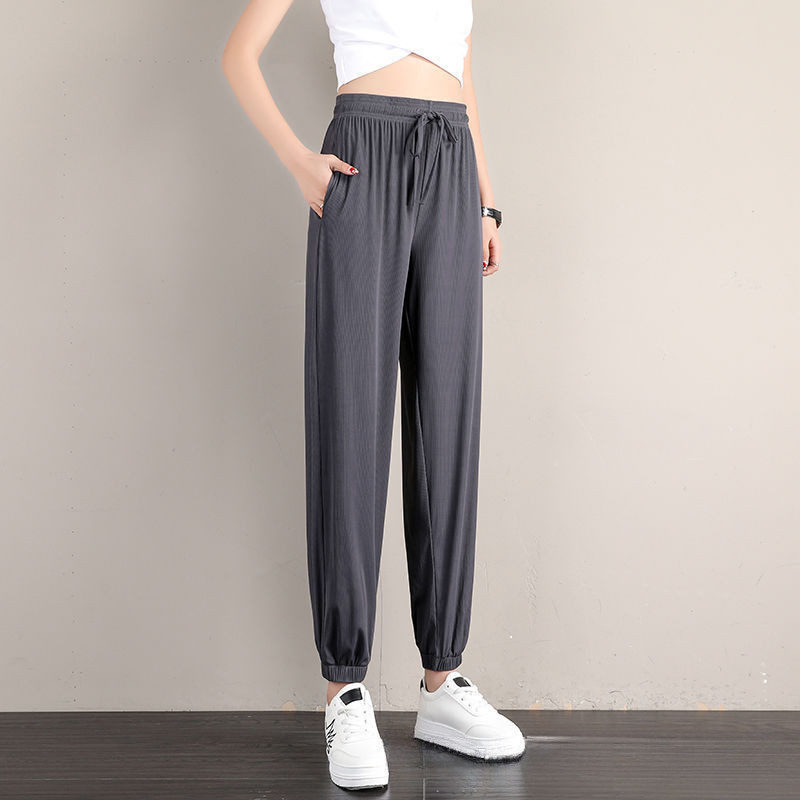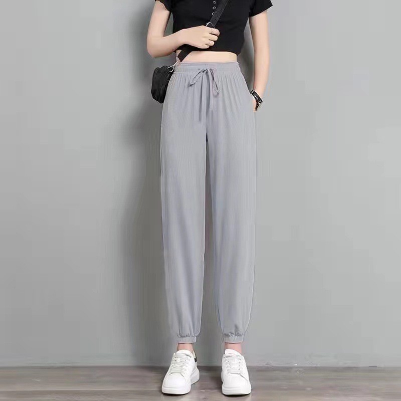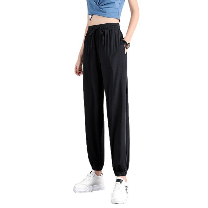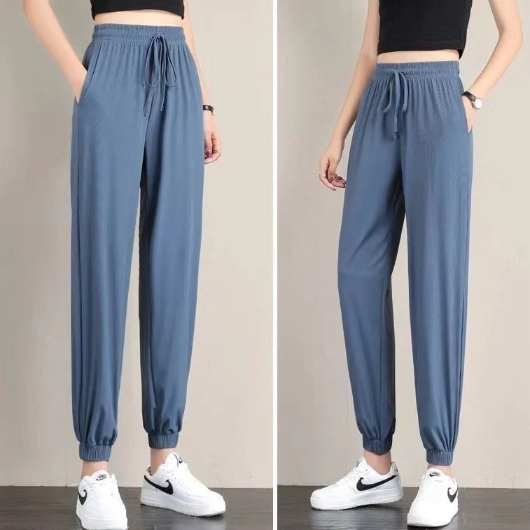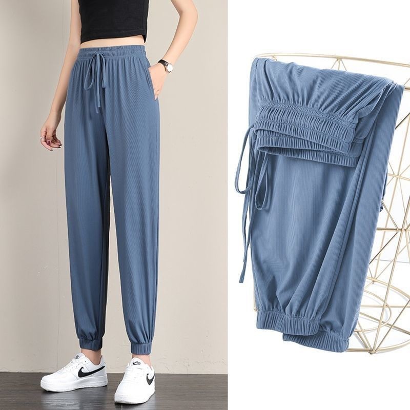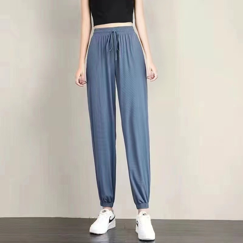 Bigsize 80kg Loose Fit High Waist Pocket Casual Tapered Wide Leg Ice Silk Women Sports Sweatpants Female Plus Size Breathable Long Jogger Pants
