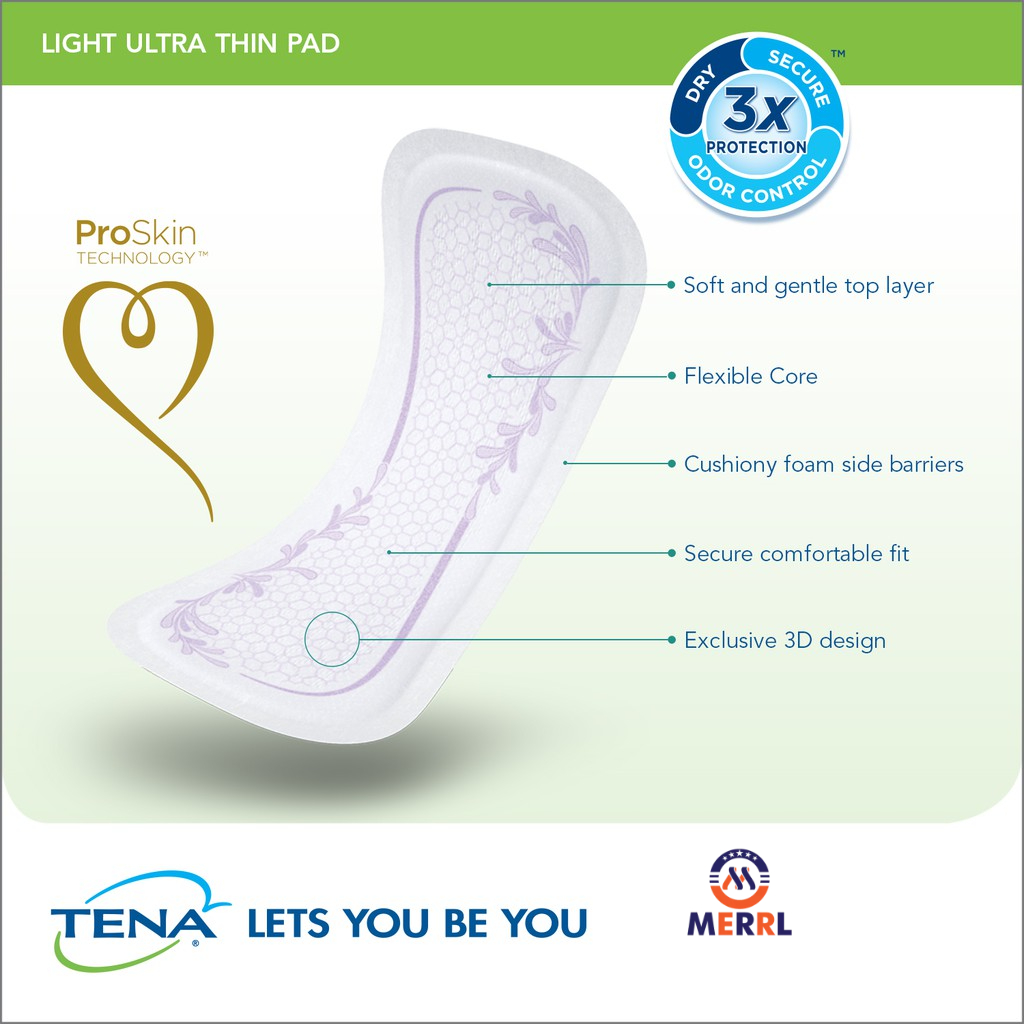 Tena Intimates Light Ultra Thins 3x Protection Odor Control Pads 30 counts