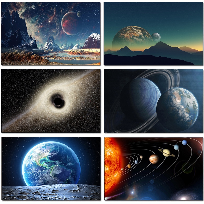 Planets Universe Galaxy Wall Art Stars Landscape Canvas Painting Posters Prints Space Exoplanet Picture for Living Room Cuadros