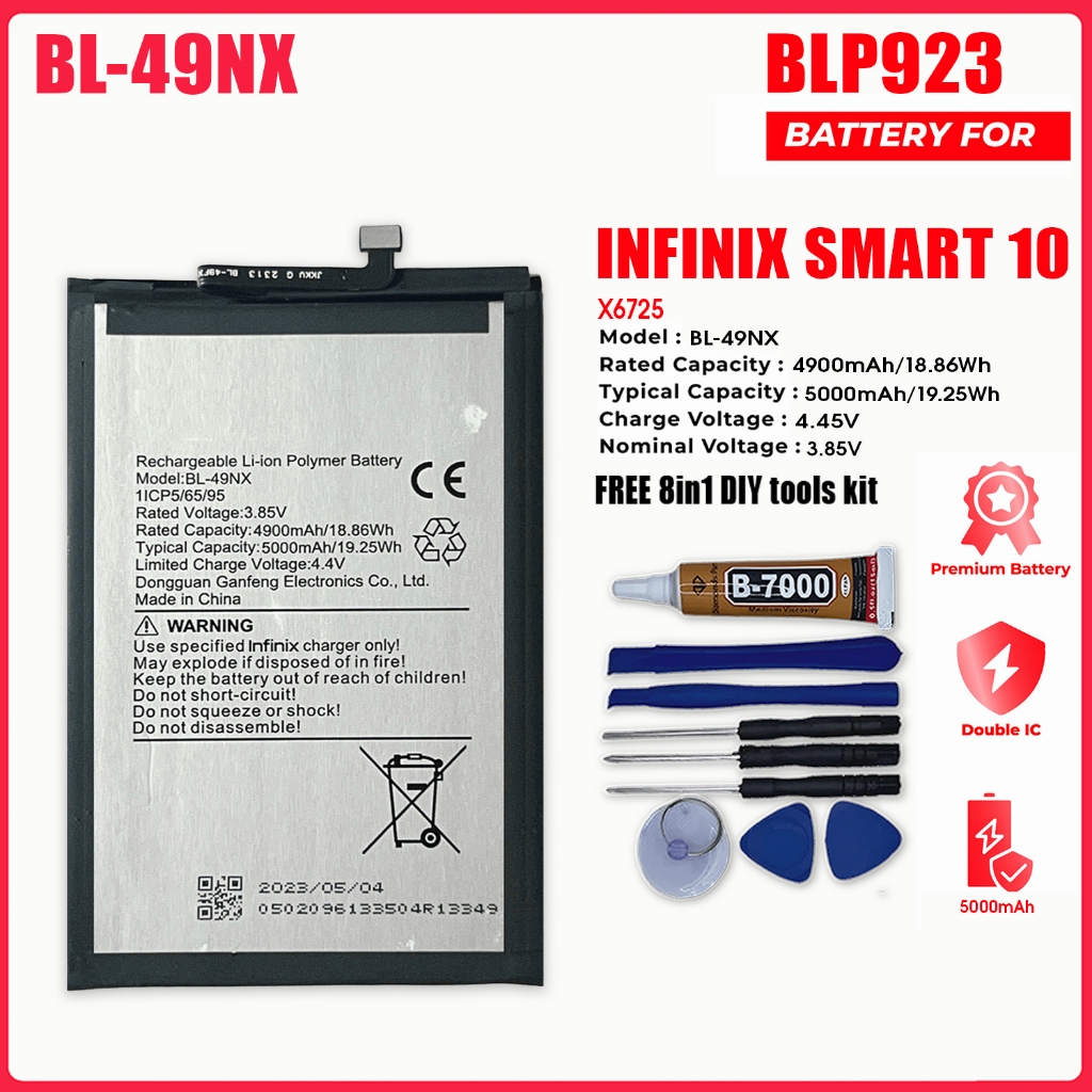 BL-49NX 5000mah capacity High quality battery for infinix Smart 10 (X6725) free tools kit for diy
