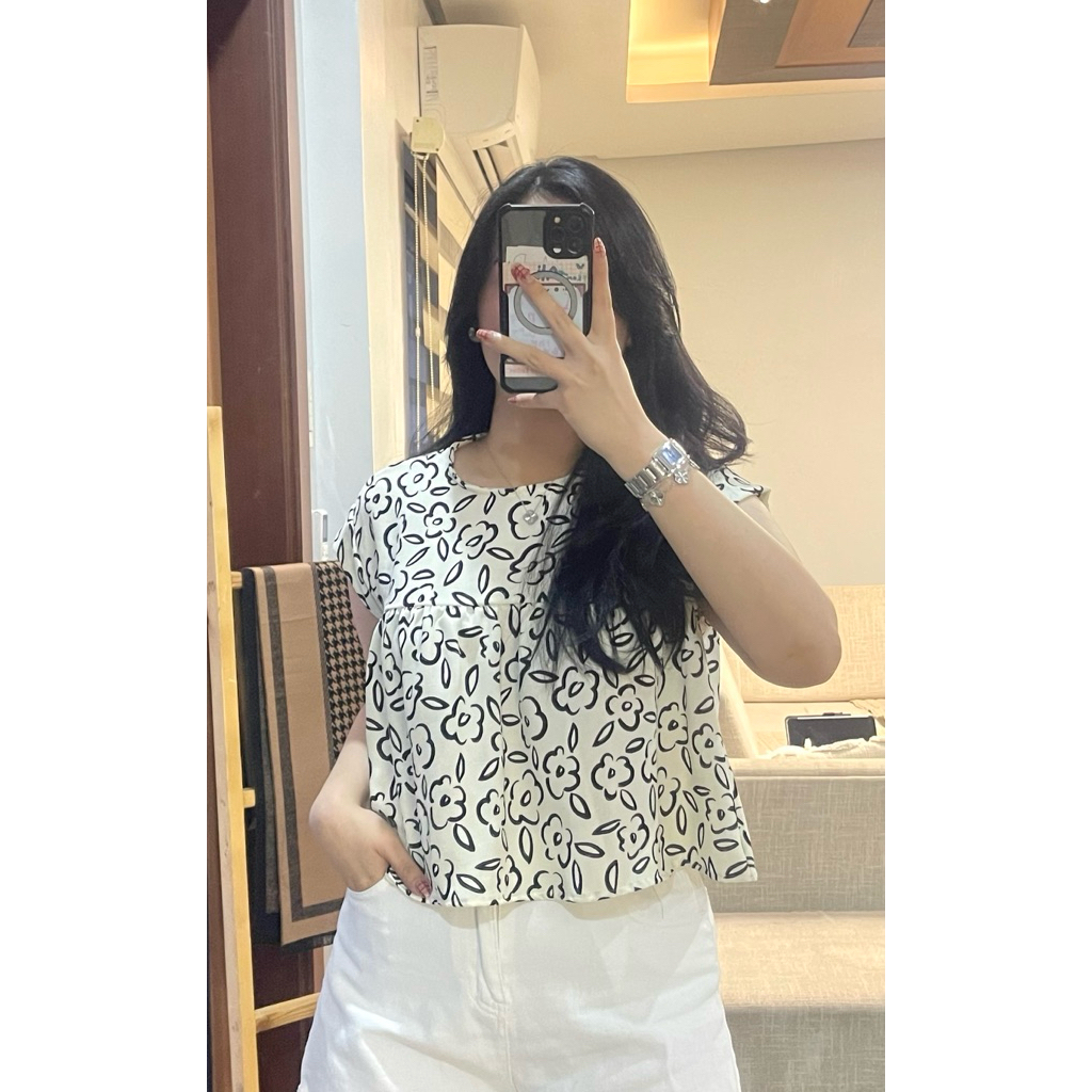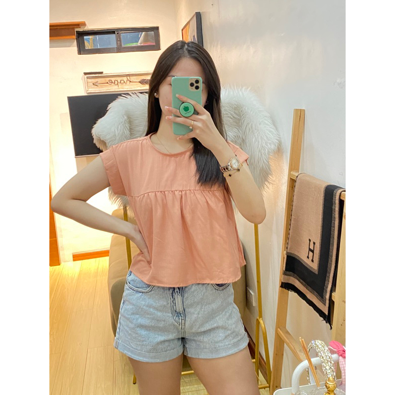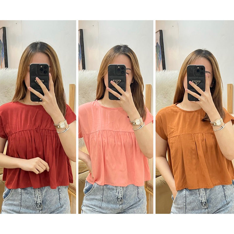 COCOBABA Clothing Ara Freesize Ruffle Hem Loose Semi Croptop