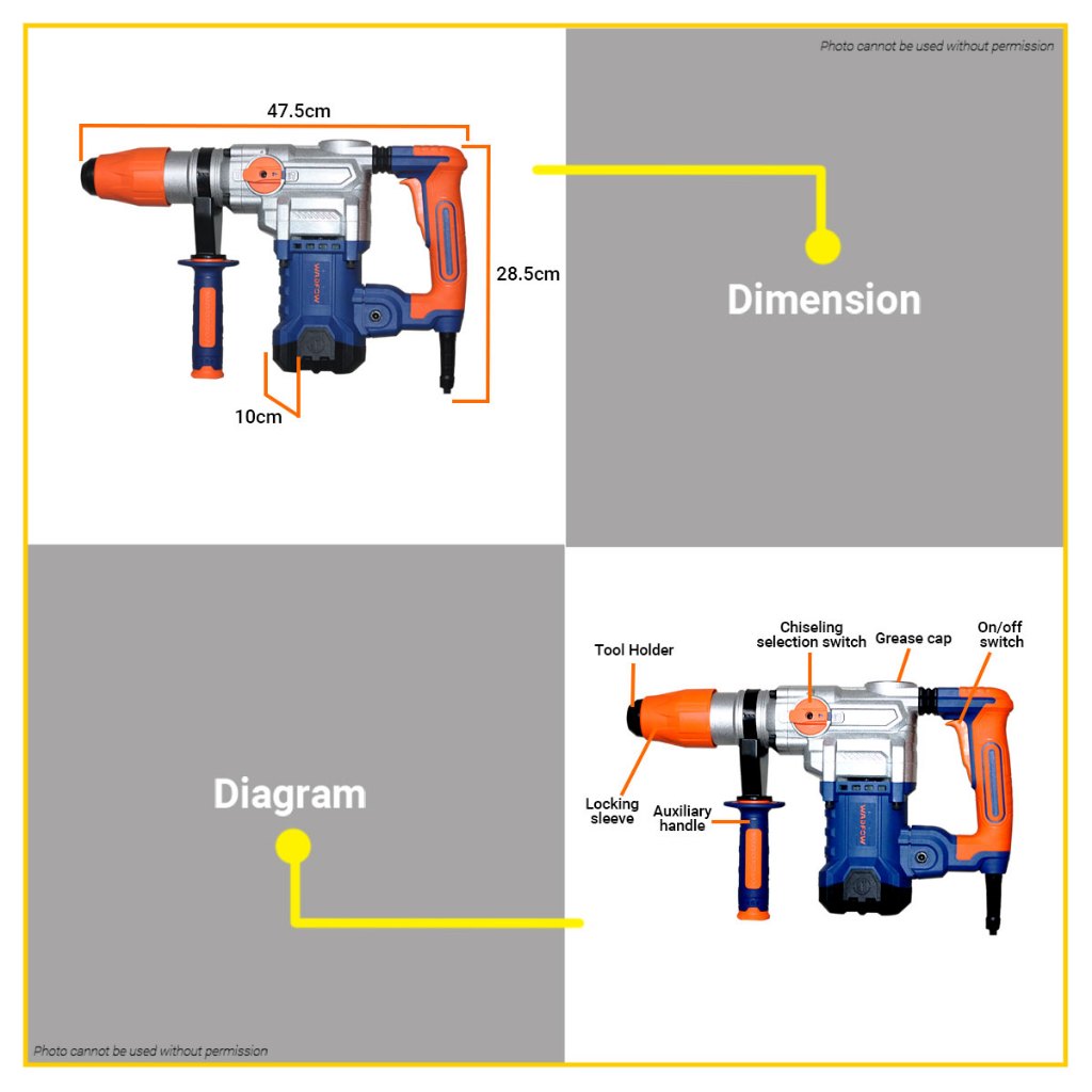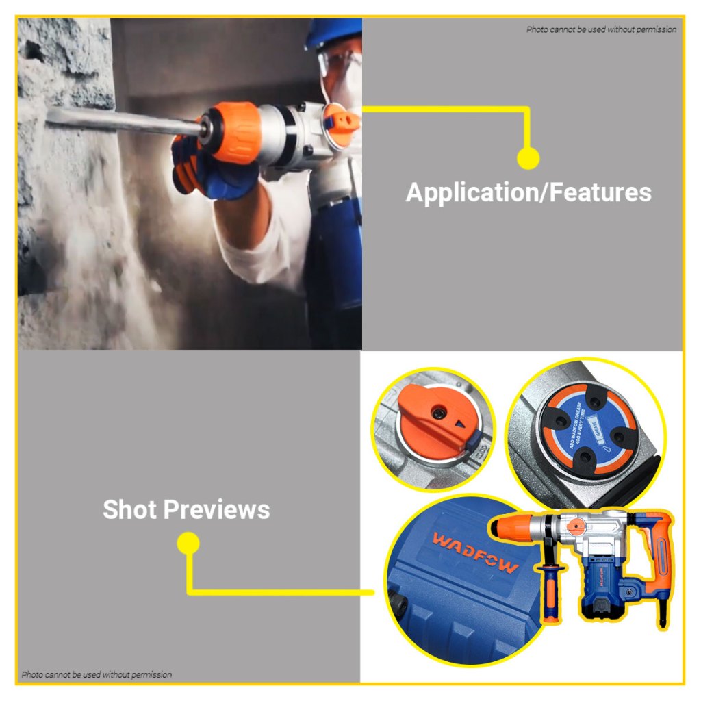 Buildmate x WADFOW 1600W Industrial Rotary Hammer Drill Chipping Gun Drill SDS Max WRH3D38 WPT