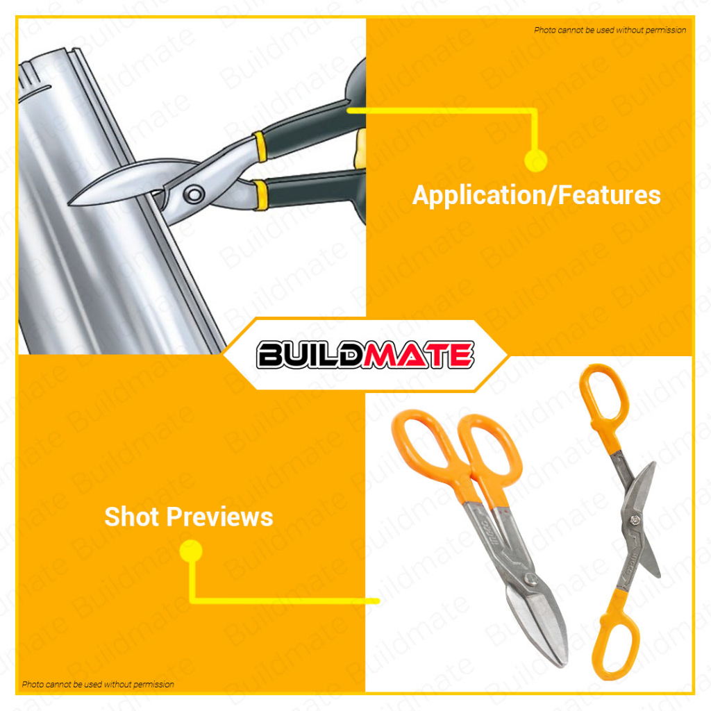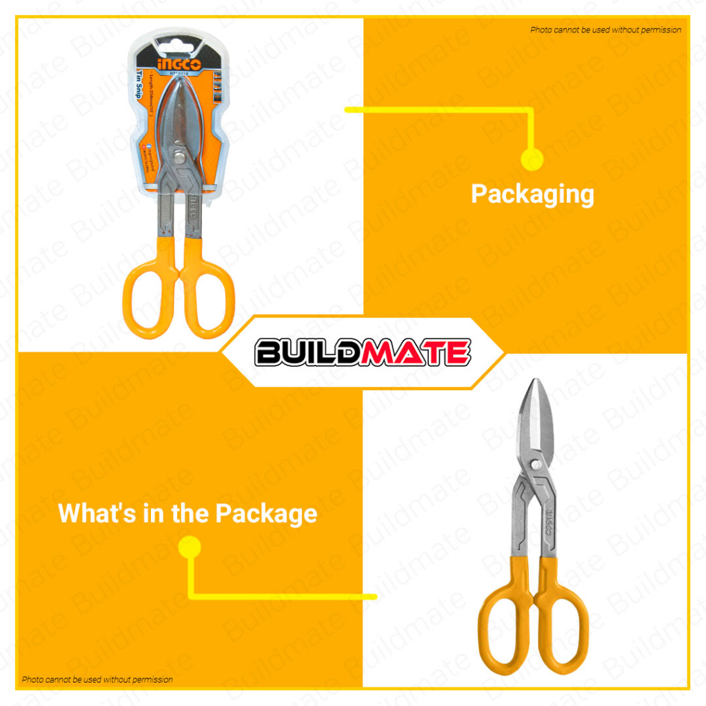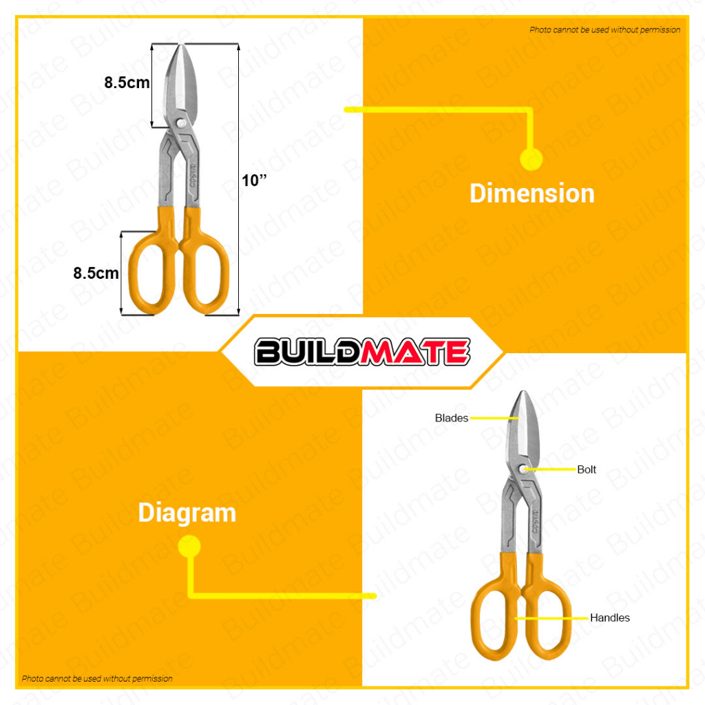 BUILDMATE Ingco 10" Inch Metal Tin Snip Shear Flat Blade Gunting Ng Yero Straight Cut Pattern - IHT