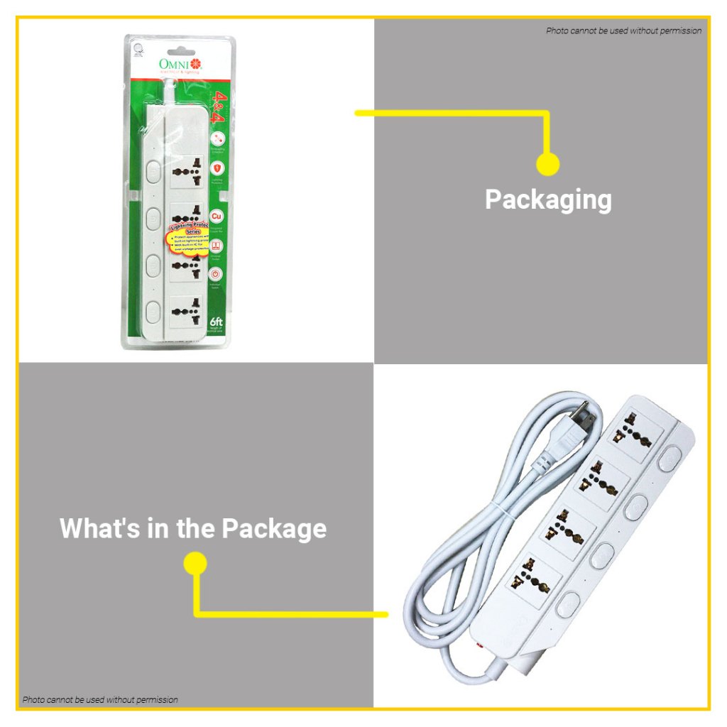 BUILDMATE Omni Universal Extension Cord 4 Gang with Switch Outlet Socket Power Strip WED340 WED-340