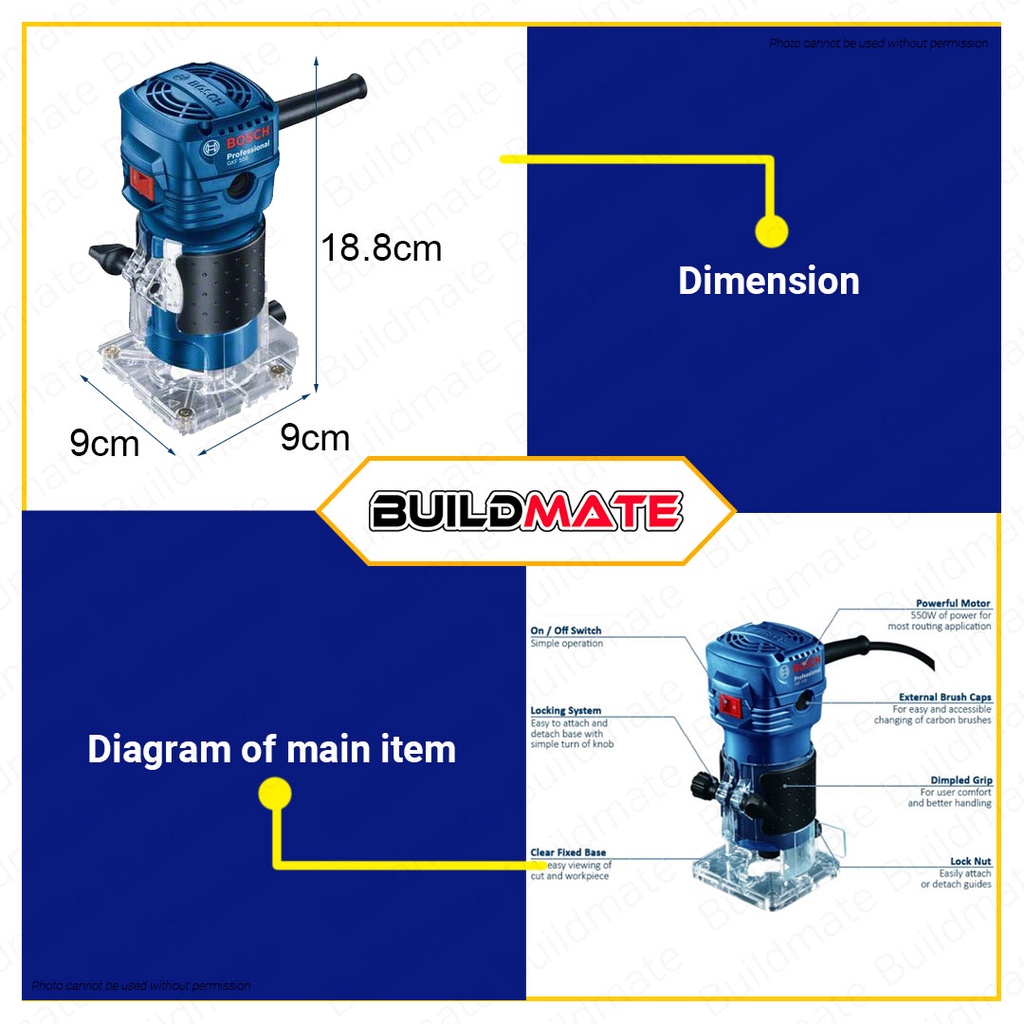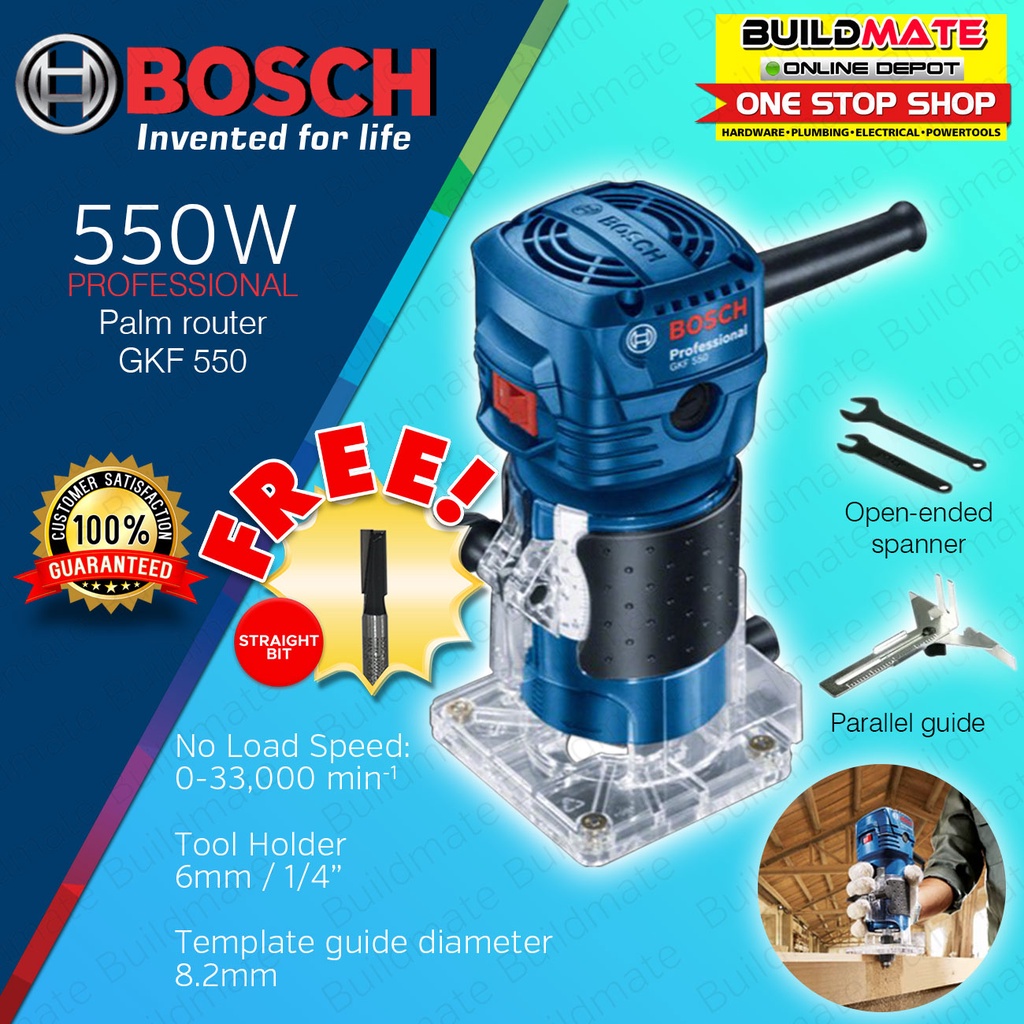 BOSCH Professional Palm Router / Trimmer 550W COC GKF 550 + FREE 1 STRAIGHT BIT 100% ORIGINAL