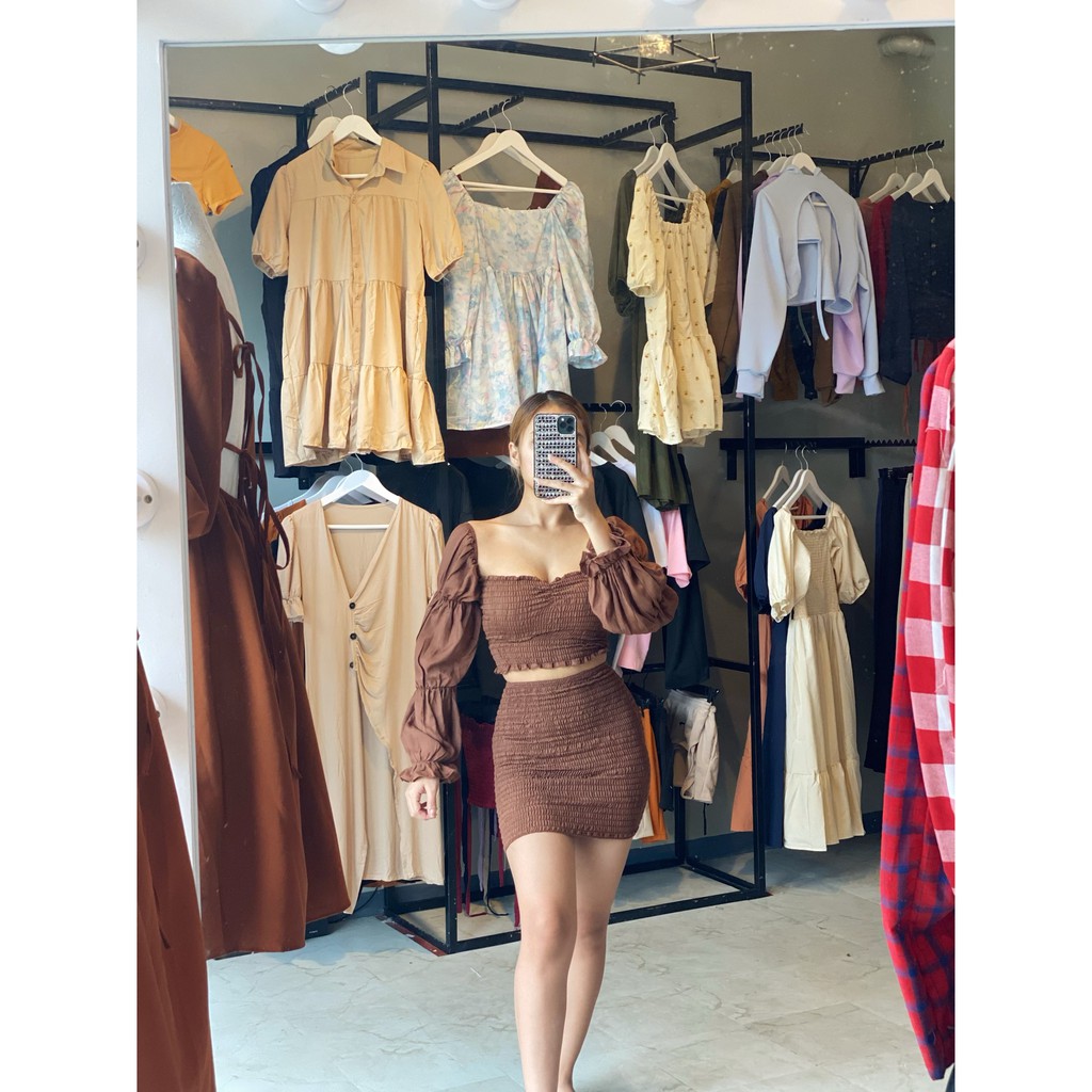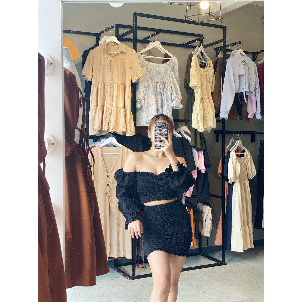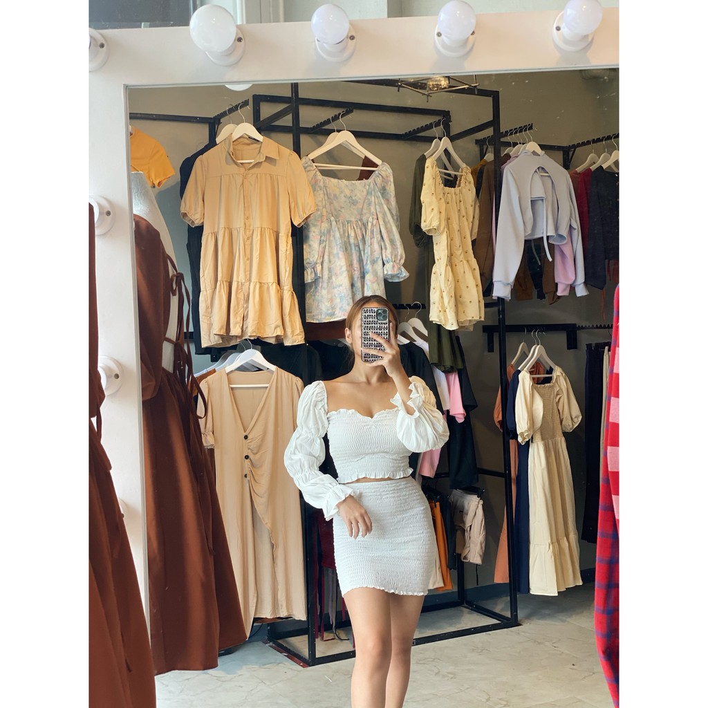 024 EG Trends sexy coordinates longsleeve 2 ways to wear | Smocked sexy coordinates