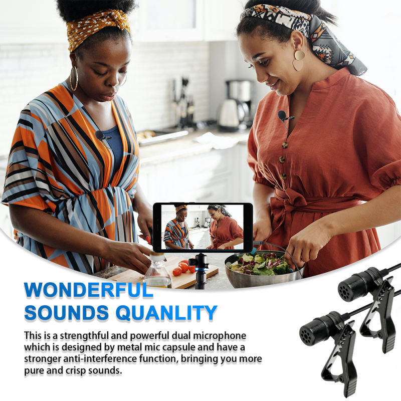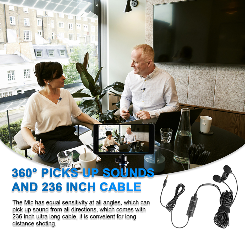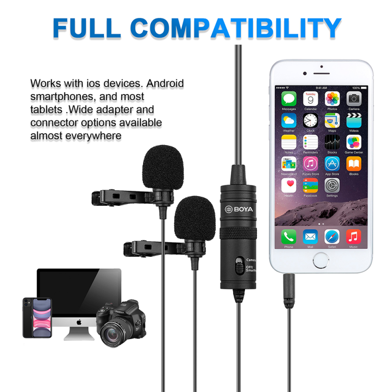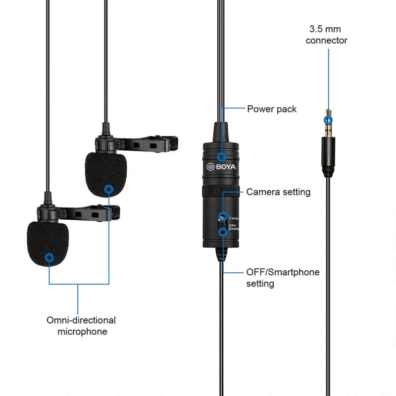BY-M1DM Dual Omni-directional Lavalier Microphone Mic for DSLRs Camera Camcorder for Smartphone