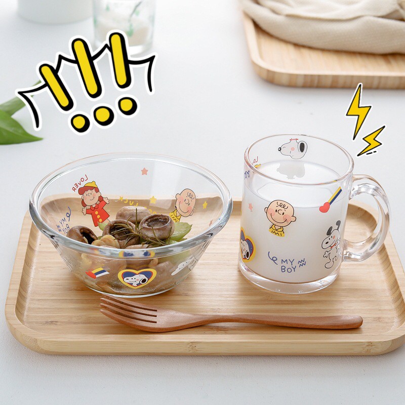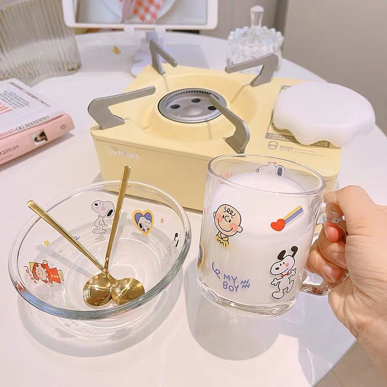 〚sol and luna.home〛Cute Snoopy Glass Mug and Bowl Set