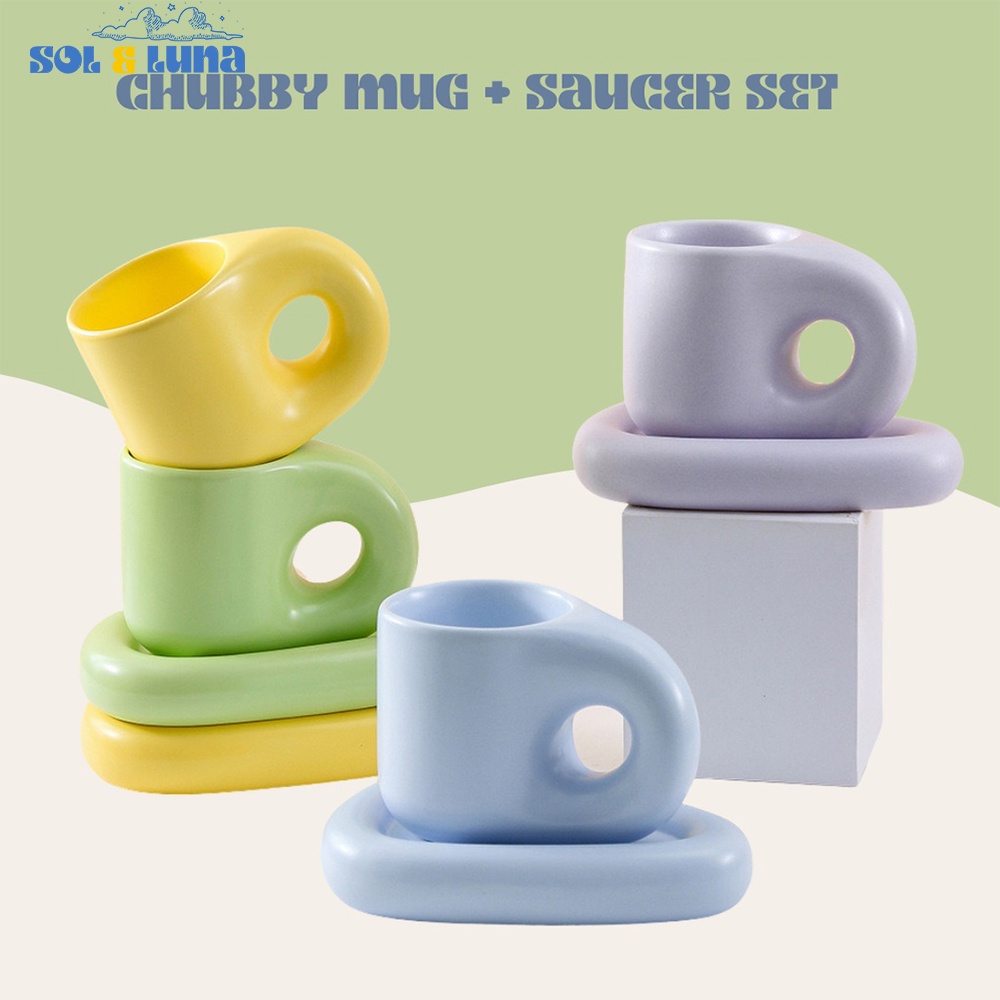 [ sol and luna.home ] Nordic Aesthetic Ceramic Chubby Chunky Cup and Triangular Saucer Set