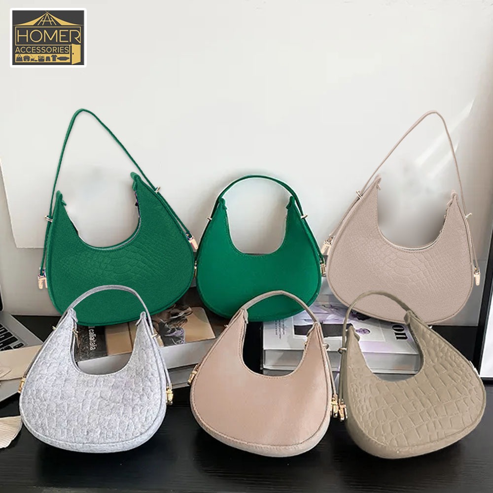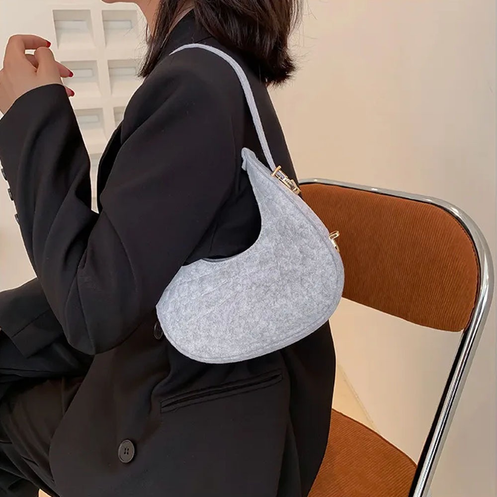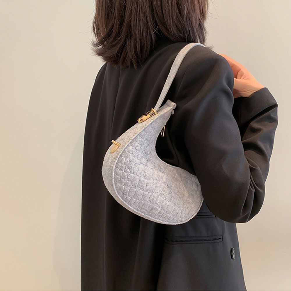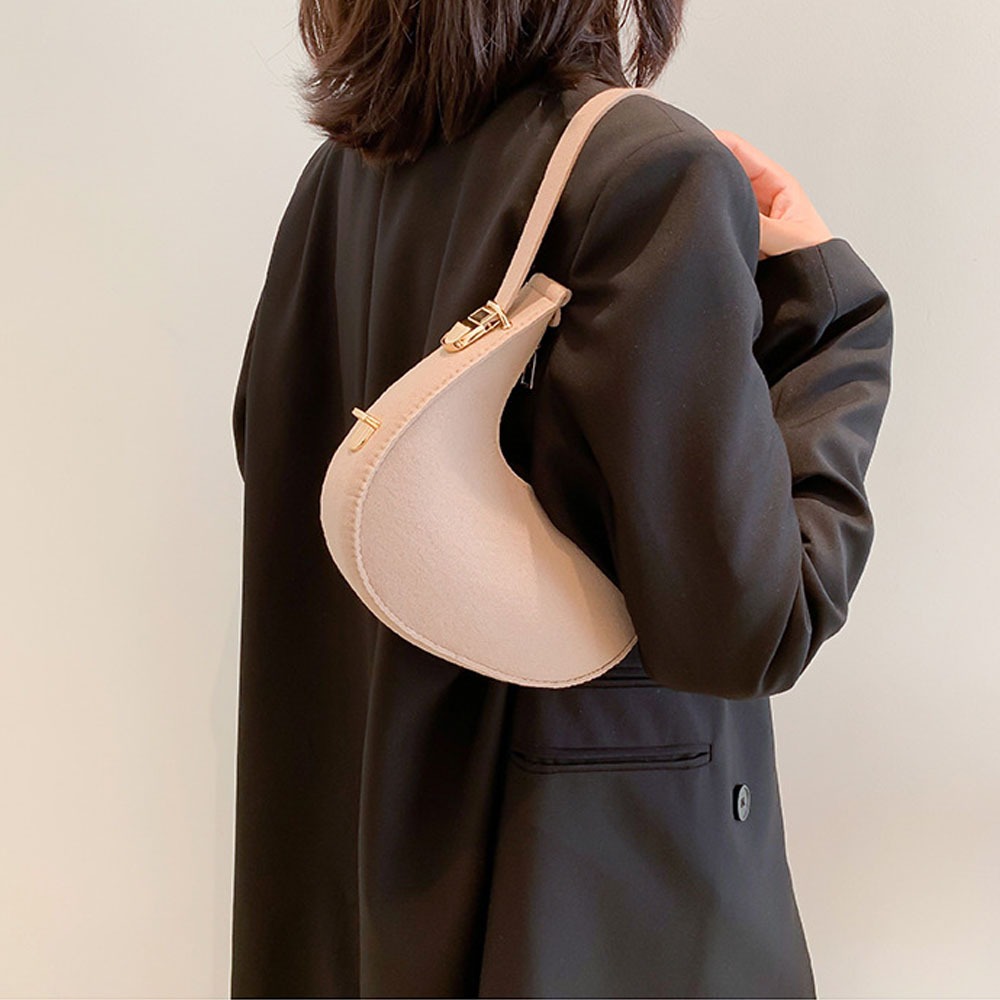 Homer Margot Small Felt Shoulder Bag for Women Armpit Bag Cresent Shape Minimalist Style Lightweight