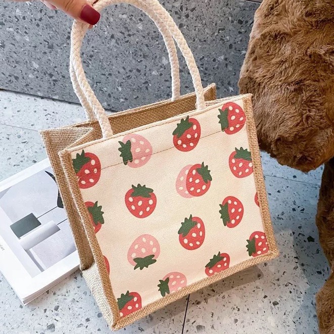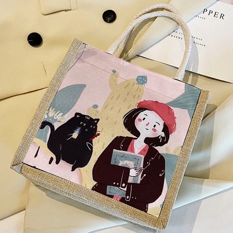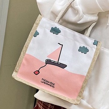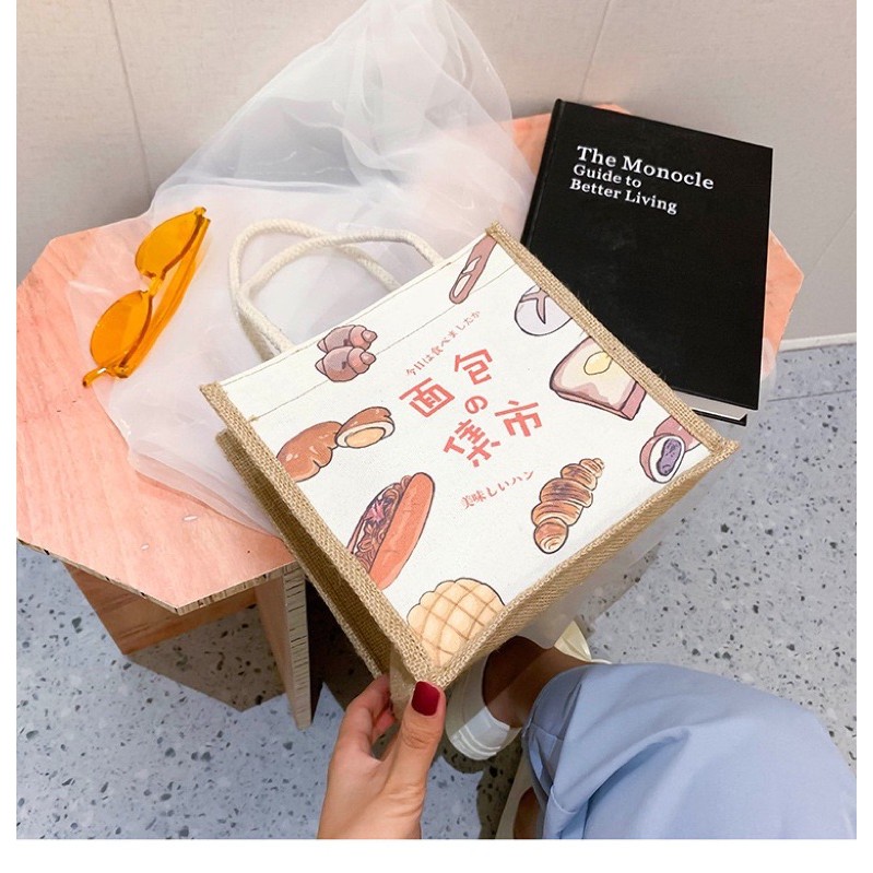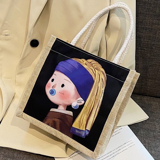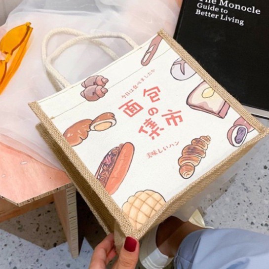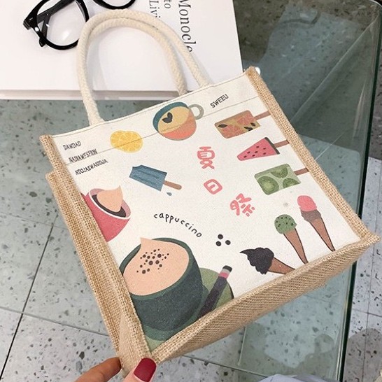 Korean design Abaca bag linen bag unisex graffiti logo printed handbag cute bag casual bag