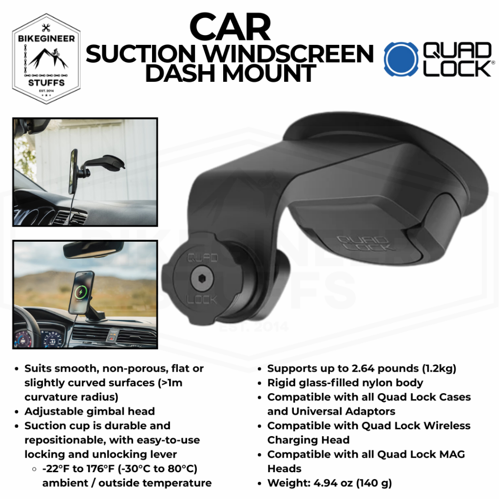 Quad Lock Car Suction/Windscreen Dash Mount