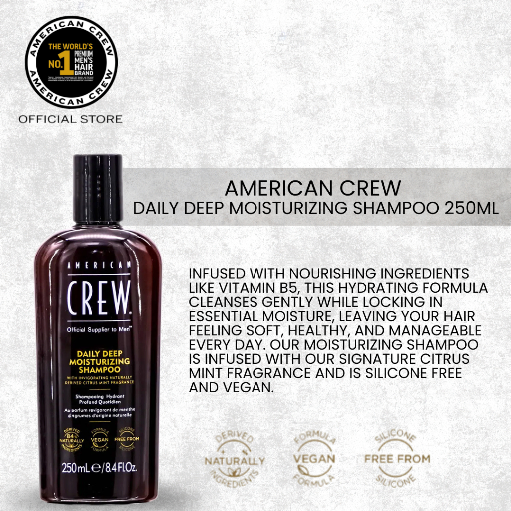 American Crew Daily Deep Moisturizing Shampoo 250ml VEGAN and SILICONE-FREE for NORMAL TO DRY HAIR