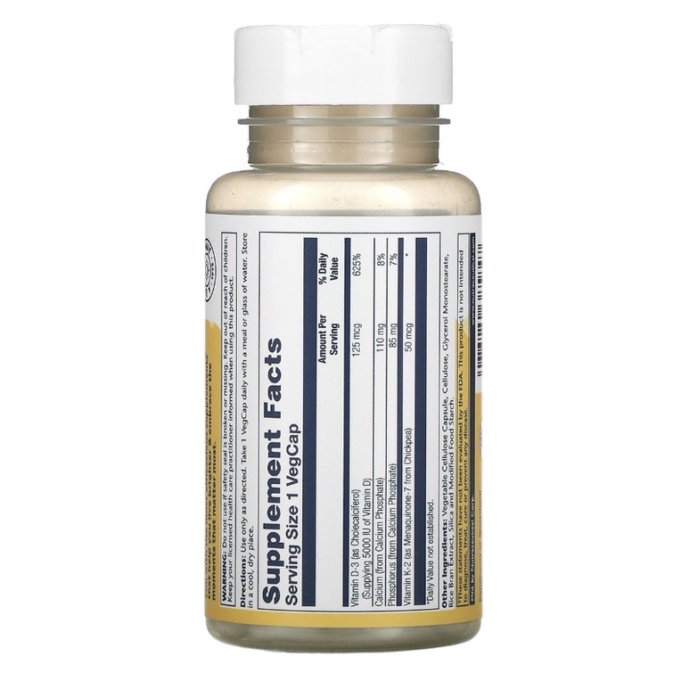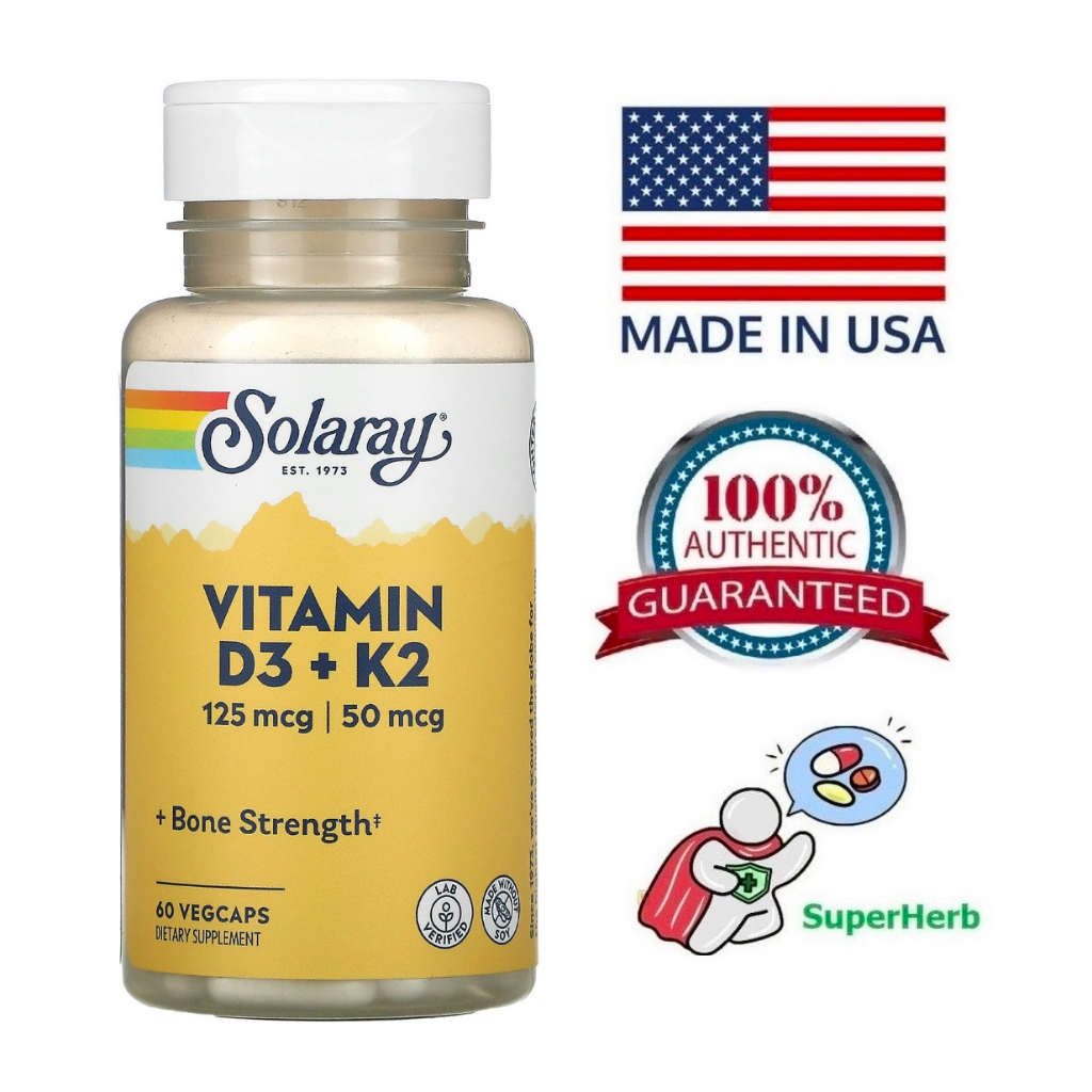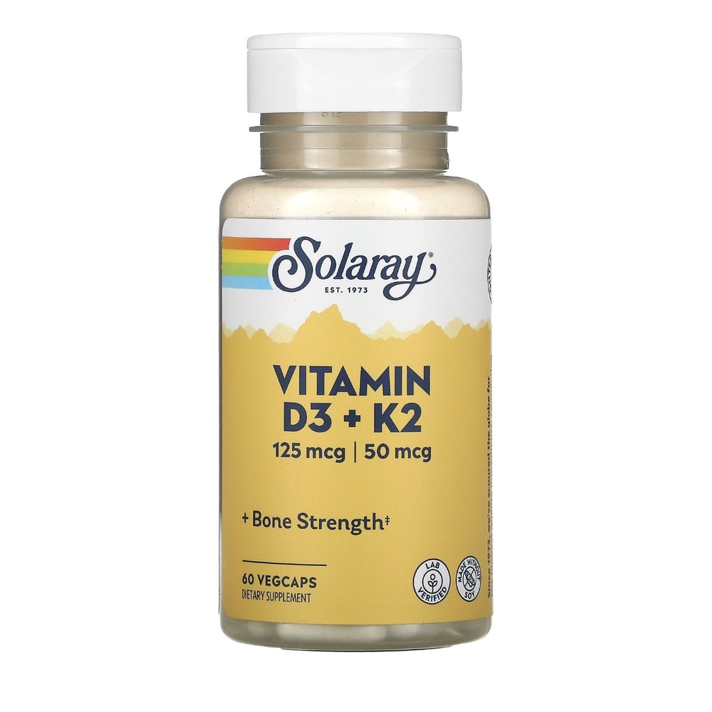 Solaray, Vitamin D3 + K2, Soy-Free, 125 mcg (5000 IU)
