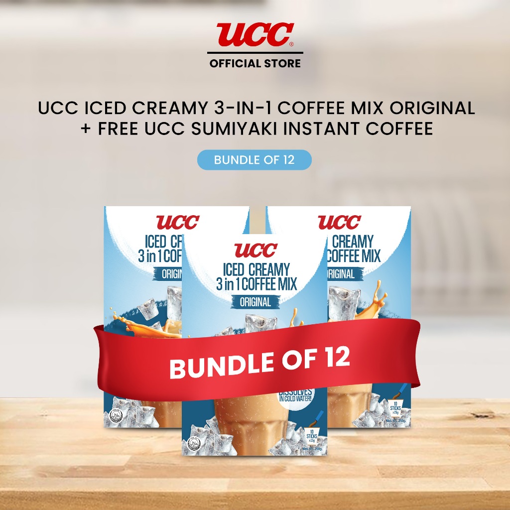 UCC Iced Creamy 3-in-1 Coffee Mix (Bundle of 12) with Free UCC Sumiyaki Instant Coffee 100g
