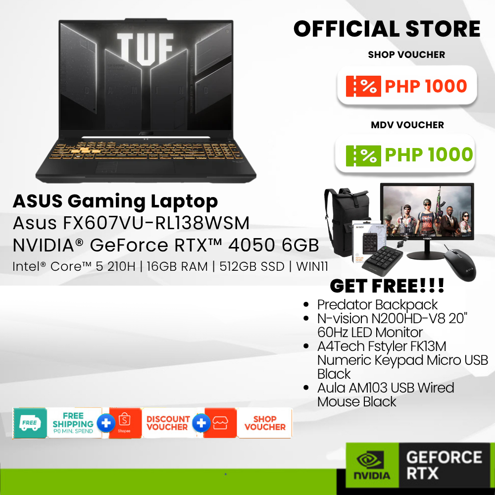 Asus Gaming Laptop FX607VU-RL138WSM Core 5-210H 16GB 512GB SSD 16" RTX4050 6GB W11 H&S+M365