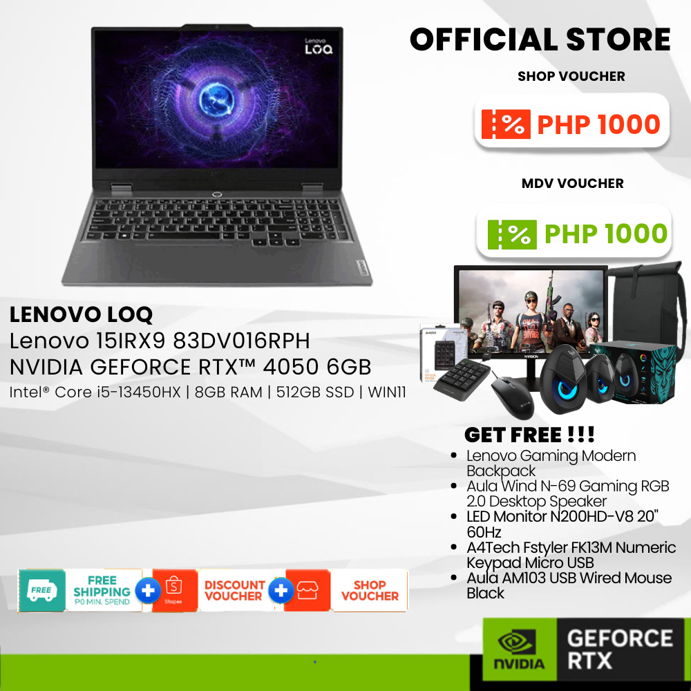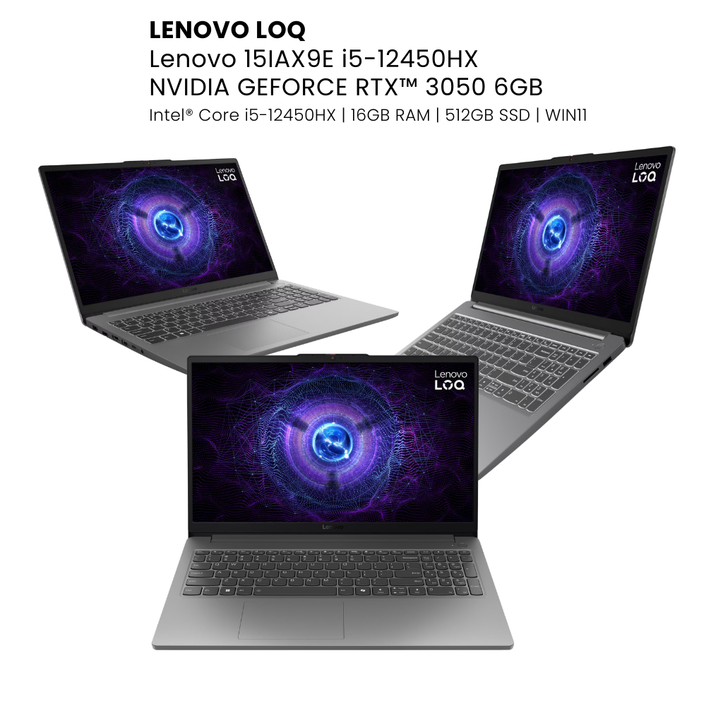 Lenovo Laptop LOQ | 15IAX9E i5-12450HX | 16GB | 512GB SSD | 15.6" | RTX3050 6GB | Win11