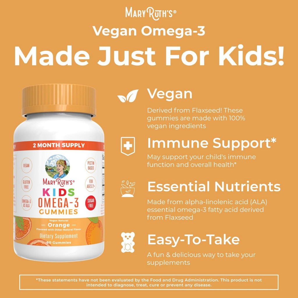 Mary Ruth's Vegan Kids Omega-3 60 Gummies Plant-Based Omega-3 for Immune l Health