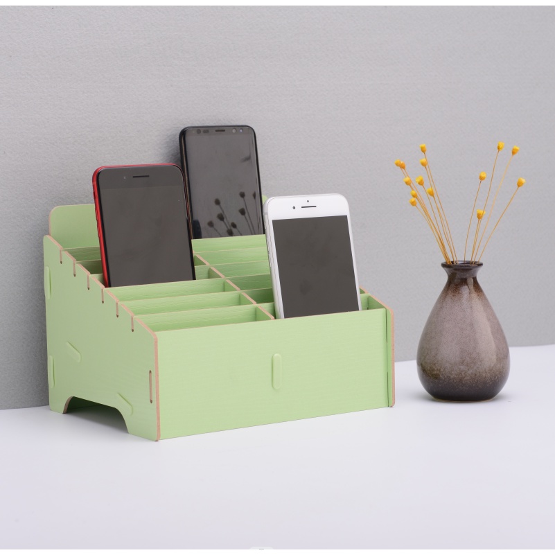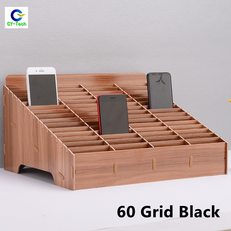 【CYT】Multi-grid Wooden Mobile Phone Storage Box Desktop Organizer for Office Classroom