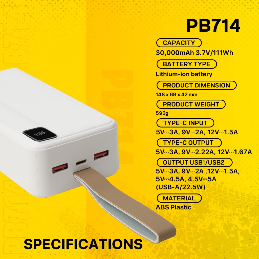 Jaguar Electronics PB714 30000mAh Power Bank with Digital Display 22.5W PD/QC 3.0 Fast Charging