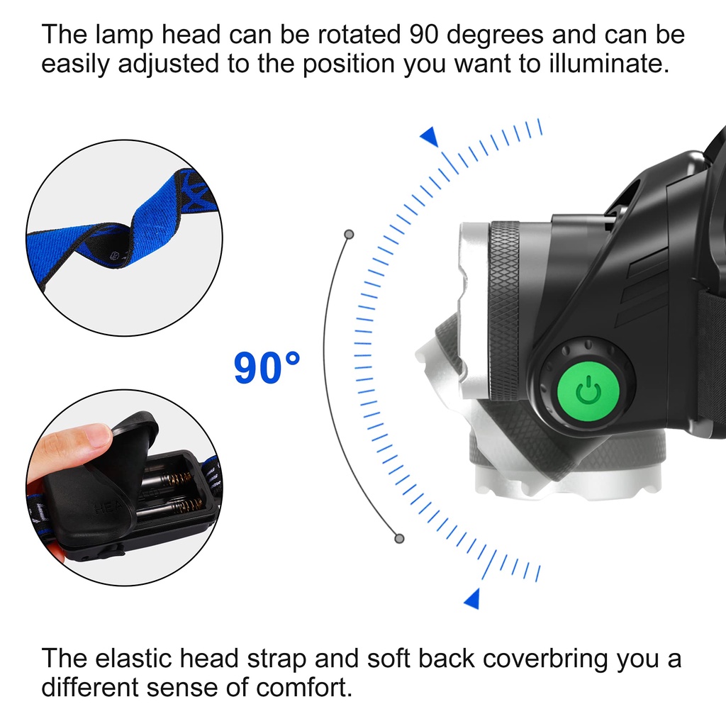 Rechargeable 20000 High Lumen Head Lamp, Ultra Bright Light CREE IPX4 Waterproof Headlight Flashlight, LED Headlamps for Adults, Camping, Hiking, Hardhat Work, Outdoors