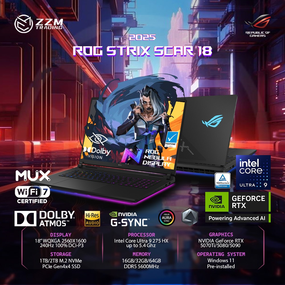 ASUS ROG Strix SCAR 18 2025 Ultra 9/i9 RTX 5090/5080/4090/4080 QHD+ 240Hz 32/64GB 1/2TB ZZM Trading