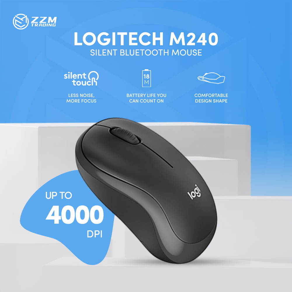 Logitech M240 Silent Mouse - Bluetooth, Silent Touch, 18 Months Battery, 400-4000 DPI ZZM Trading