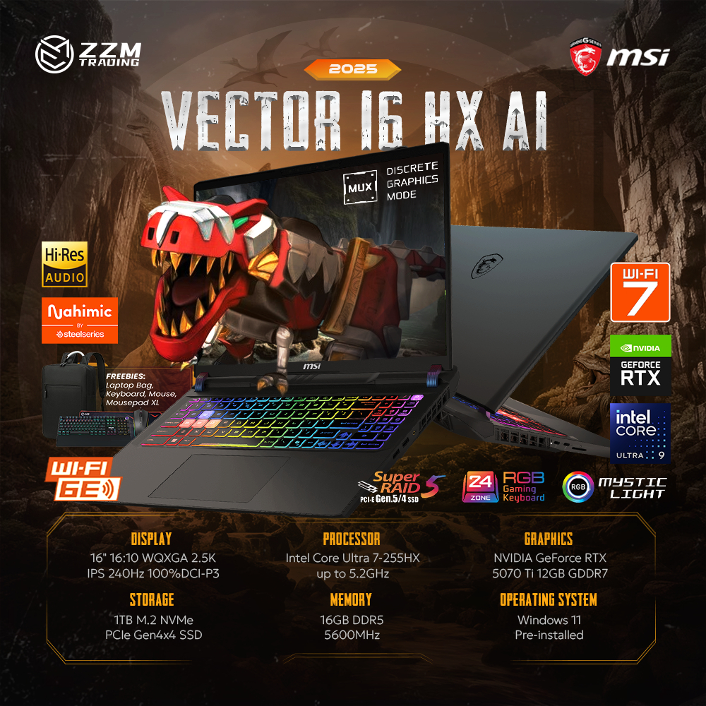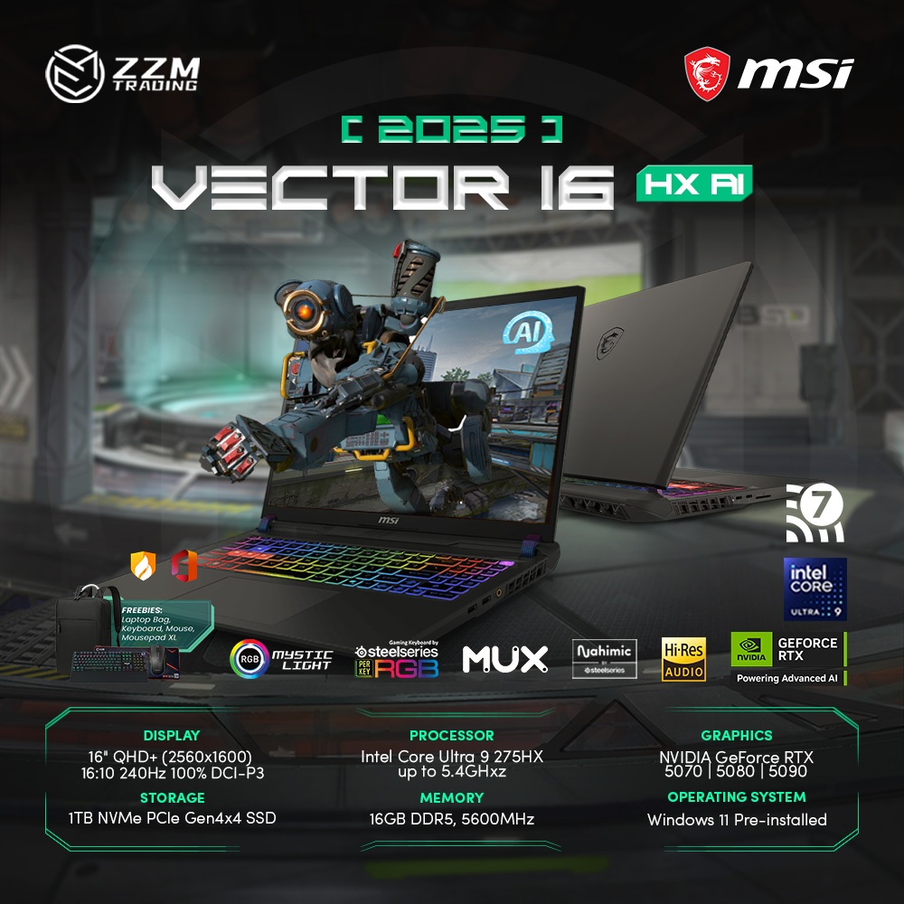 MSI Vector 16 HX AI 2025 U7 255HX/U9 275HX RTX 5070Ti/5070 16" WQXGA 240Hz 16GB 1TB SSD ZZM Trading