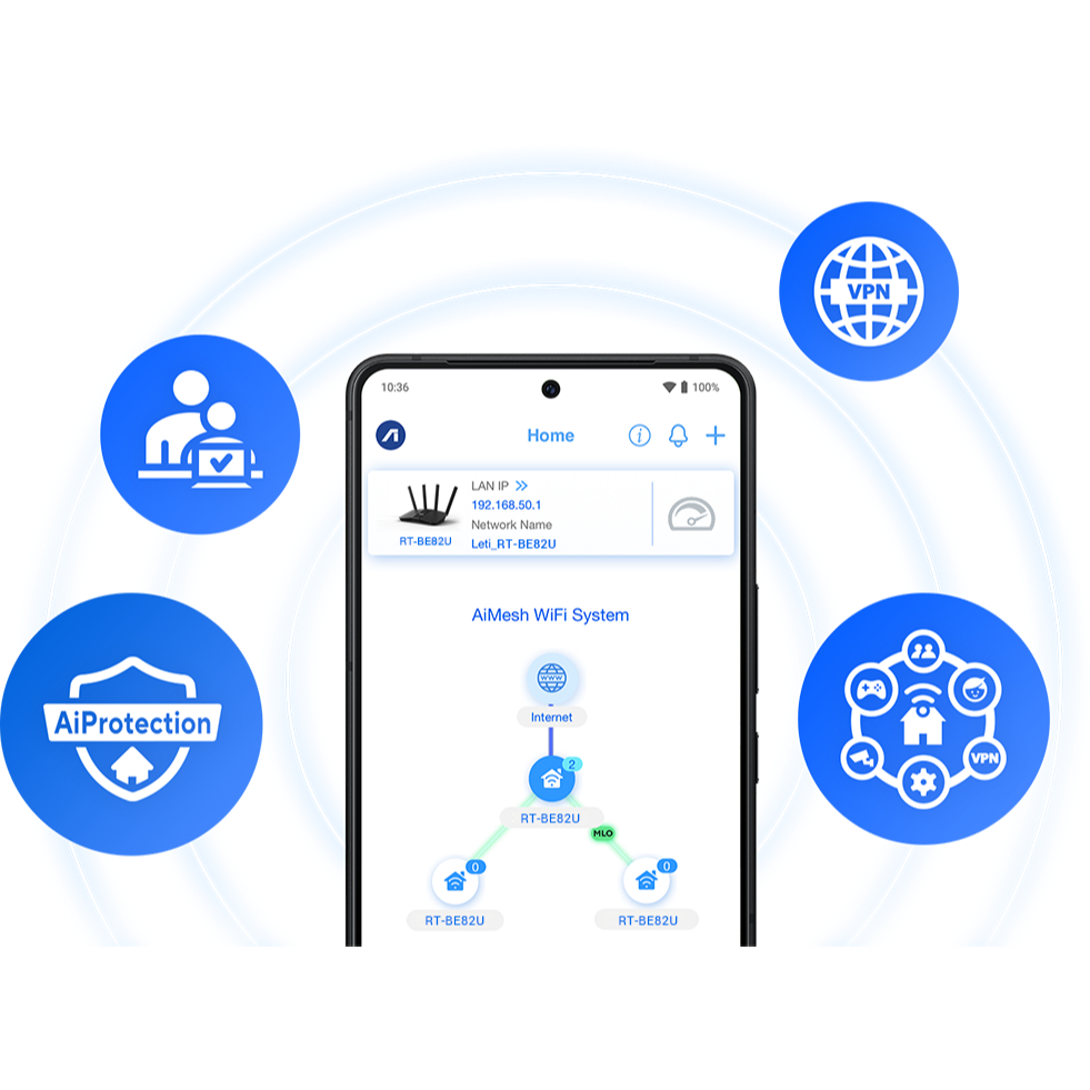 ASUS RT-BE82U Router Ultrafast WiFi 7 BE6500 5-Port 2.5G AiMesh AiProtection Dual-Band ZZM Trading
