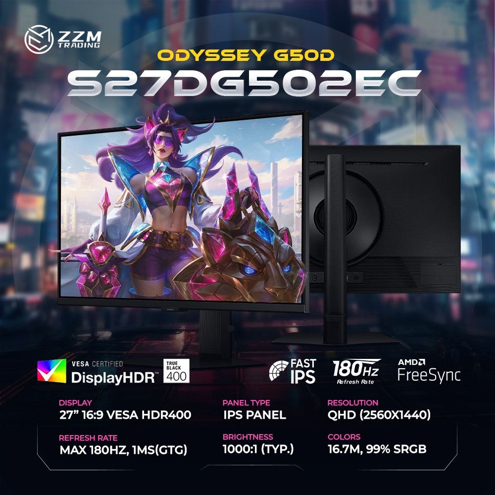 Samsung Odyssey G5 27" IPS QHD 180Hz 1ms HDR400 FreeSync Pivot Stand ZZM Trading
