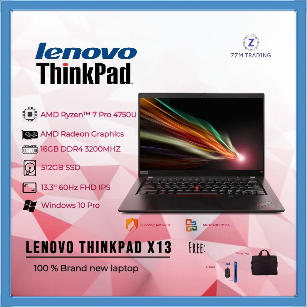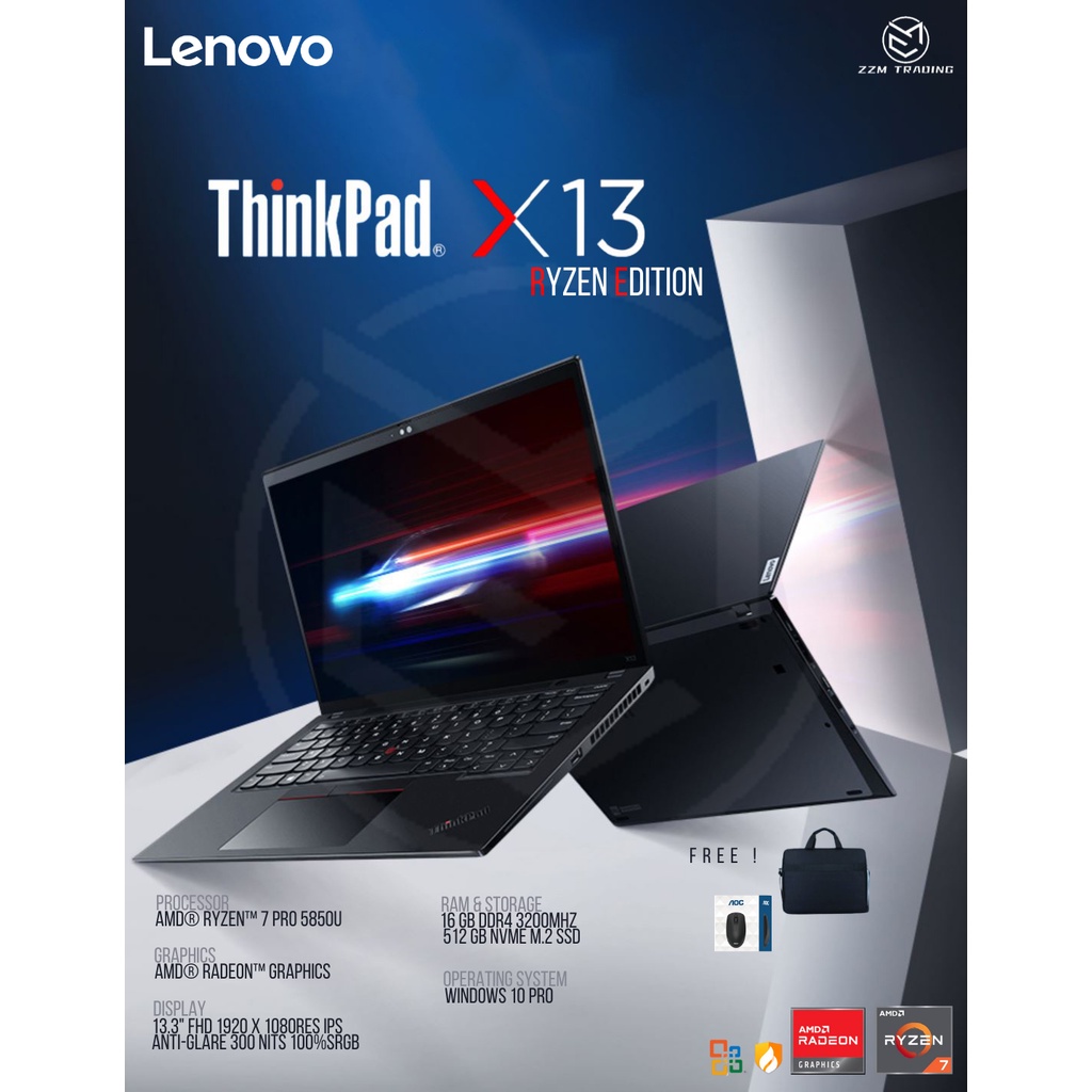LENOVO THINKPAD X13 GEN 2 2021 MODEL Ryzen™ 7 Pro 5850U 13.3" FHD IPS 300nits 16GB RAM 512GB SSD