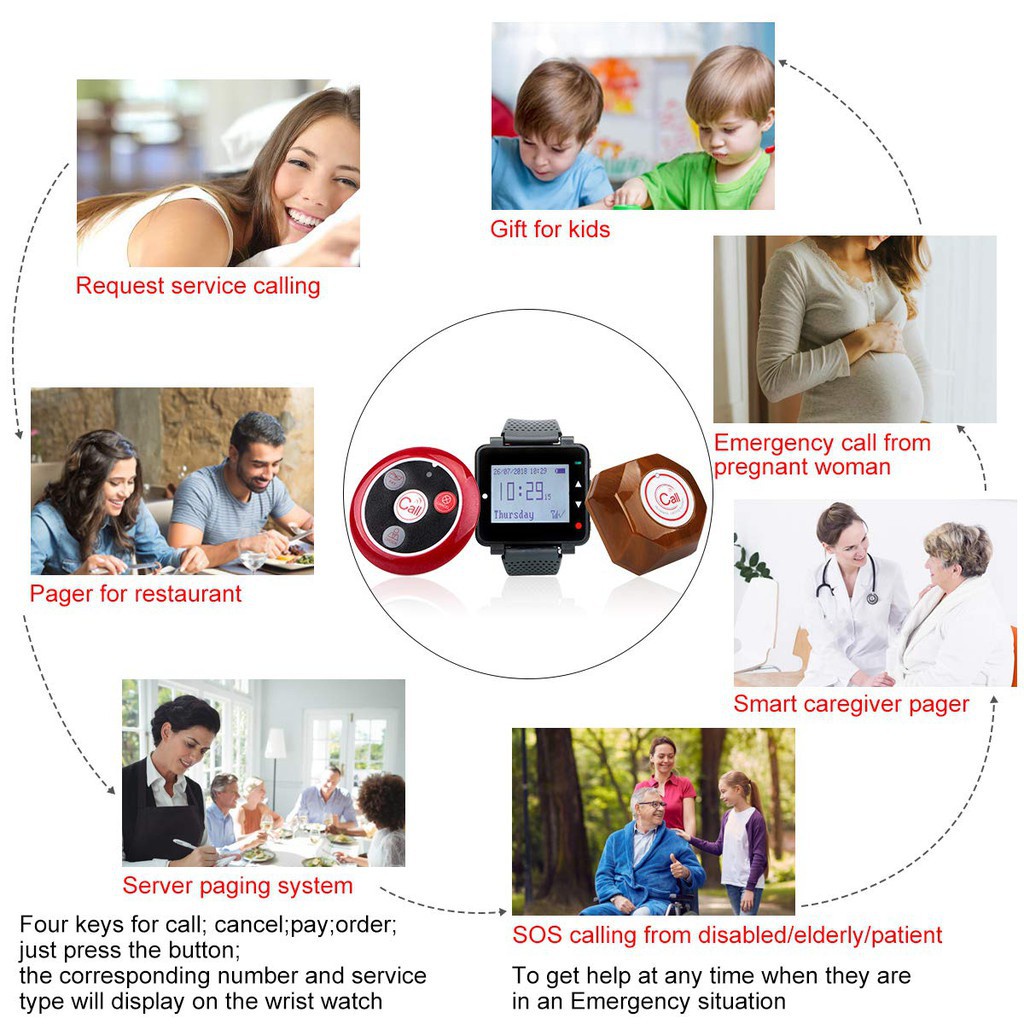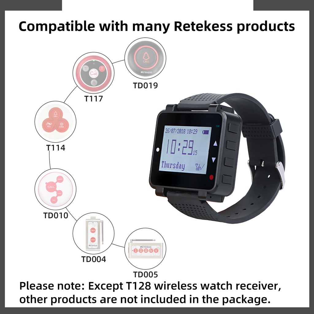Retekess T128 Restaurant Pager System Restaurant Pager Watch Pager 4 Key Call Button And Waterproof Call Button
