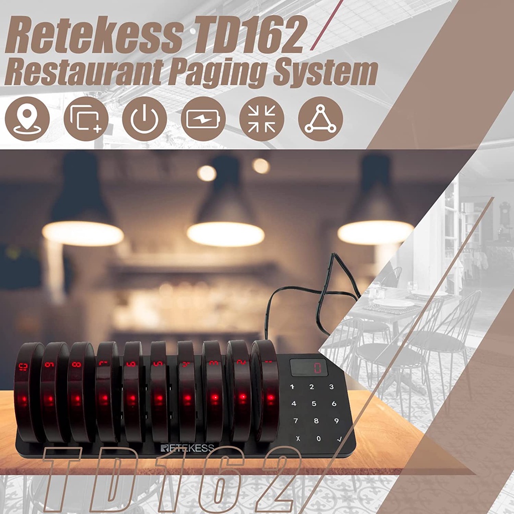 【Local Delivery】Retekess TD162 Wireless Calling Paging System Beeper Page with Buzzers for Restaurant Clinic Coffee Shop Food Truck Coaster Beepers