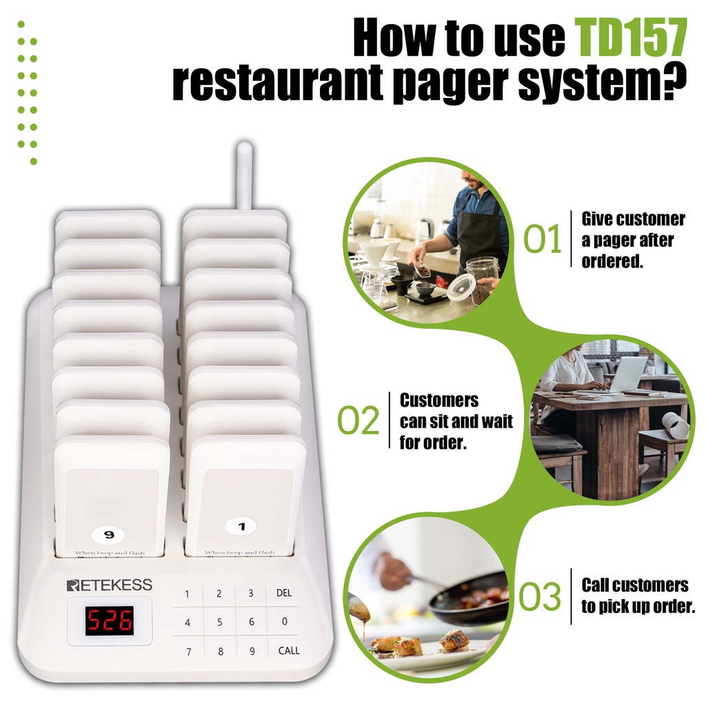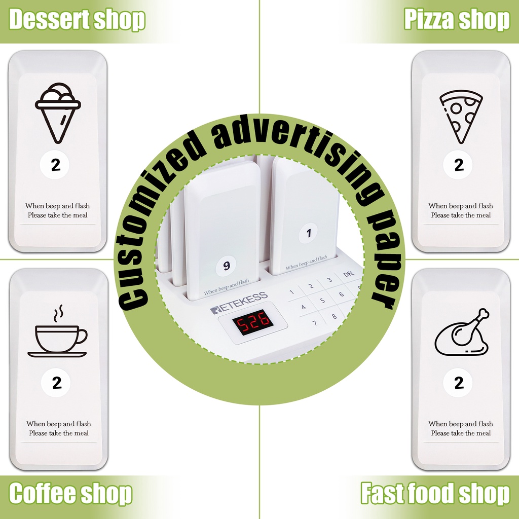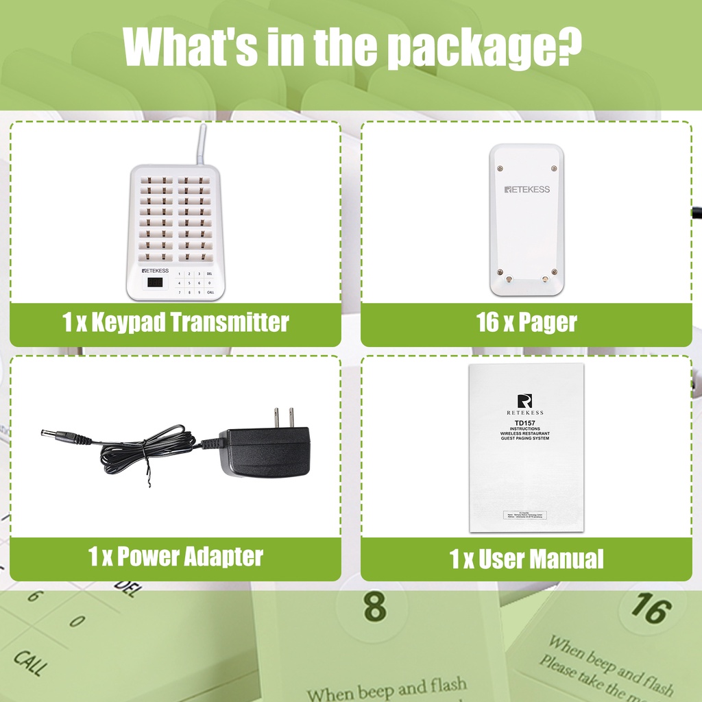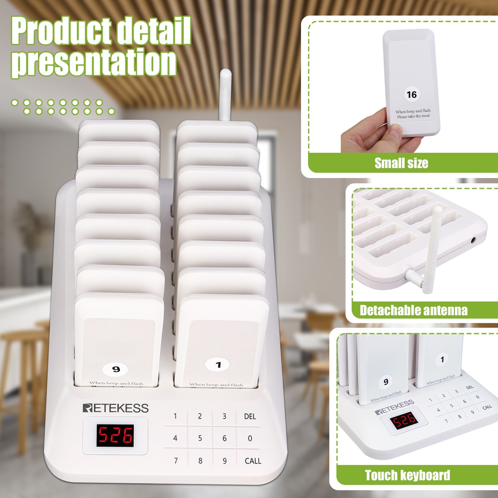 【Local Delivery】Retekess TD157 16 Pager Restaurant Wireless Calling System for Clinic Food Truck