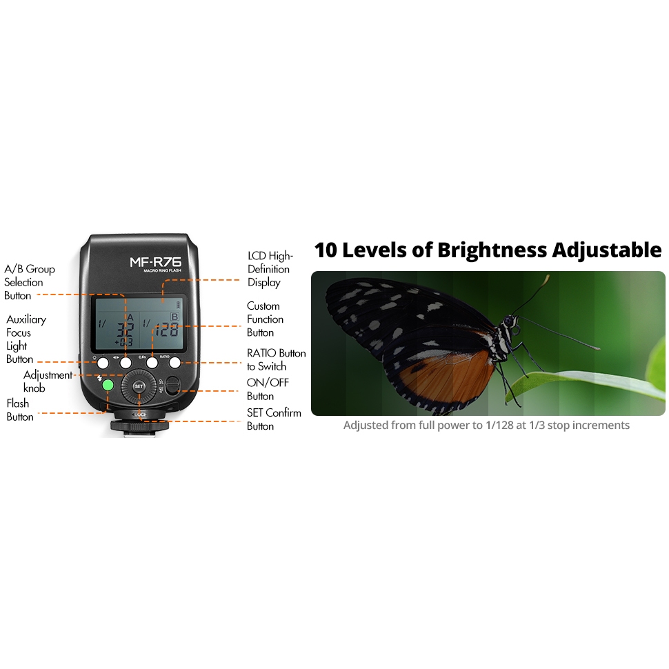 Godox MF-R76 RING76 5000K Macro LED Ring Light Speedlite Flash Light