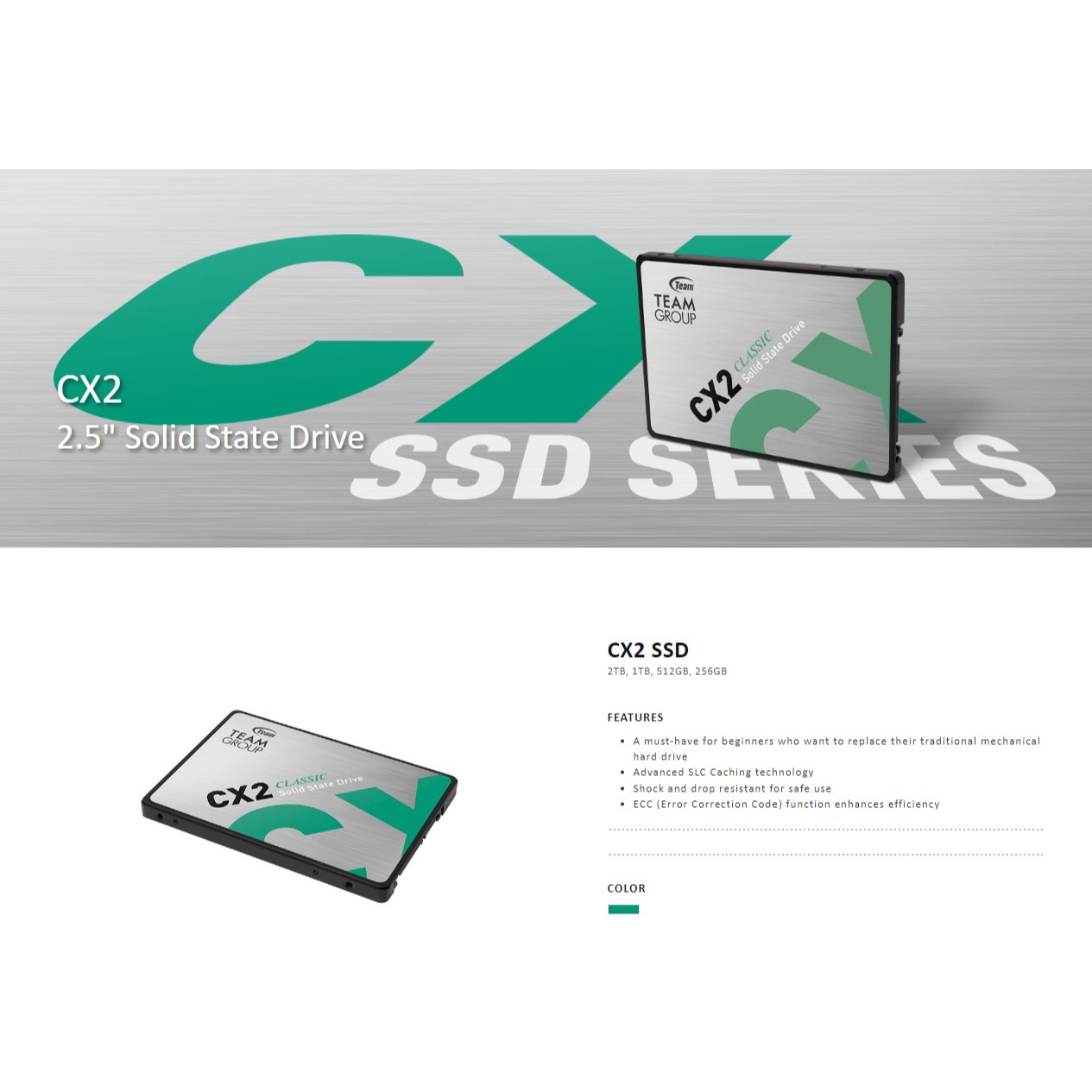 TeamGroup CX2 2.5" Solid State Drive ( 256GB T253X6256G0C101 / 512GB T253X6512G0C101 )