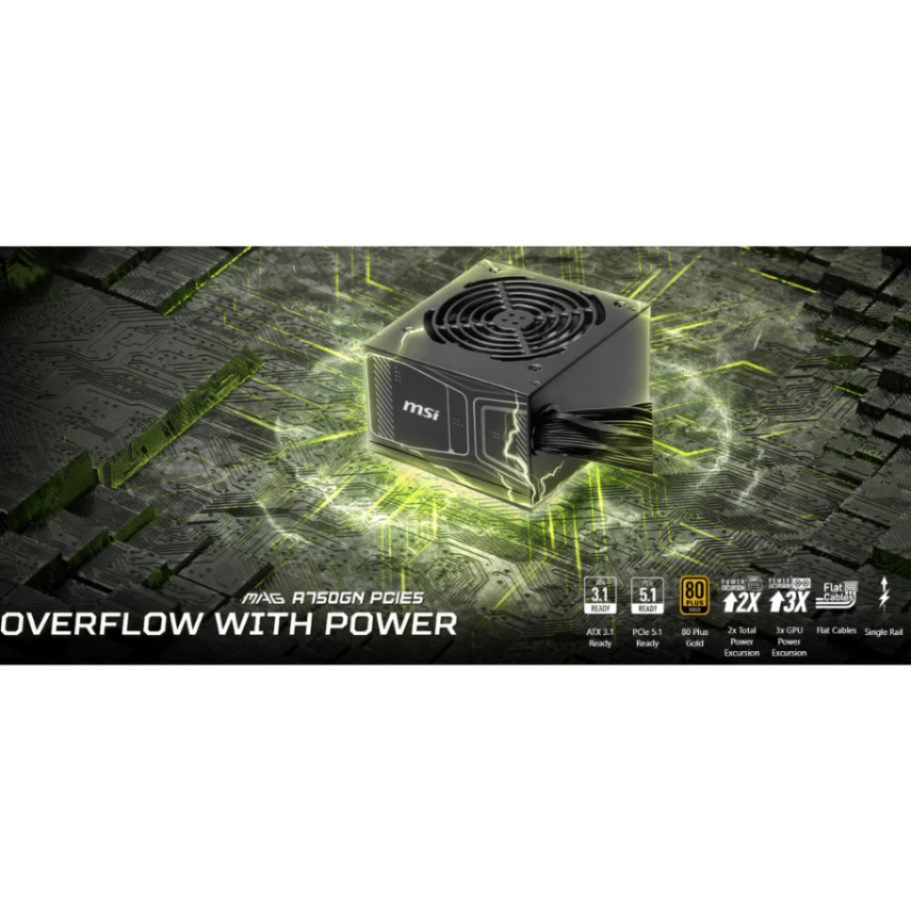 MSI MAG A750GN PCIe5 Gold 750W 80+ Non Modular Power Supply