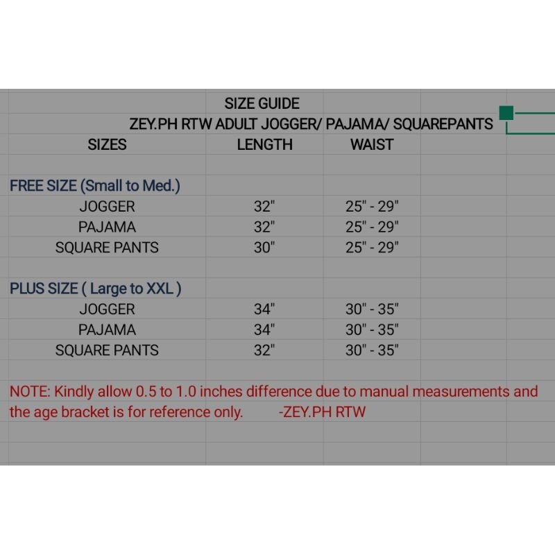 ZEY.PH RTW Square Pants for Women Plus Size & Free Size
